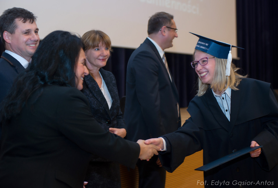 Dyplomy ukończenia studiów Absolwenci odebrali z rąk władz uczelni reprezentowanych przez Prorektora ds. kształcenia dr. hab. inż. Grzegorza Masłowskiego prof. PRz i Prorektora ds. rozwoju i kontaktów z gospodarką dr. hab. inż. Mariusza Oleksego, prof. PRz oraz władz Wydziału Chemicznego prof. Doroty Antos – Dziekana wydziału, dr inż. Doroty Głowacz-Czerwonki - Prodziekana ds. ogólnych i dr inż. JoannyWojturskiej – Prodziekana ds. kształcenia.
