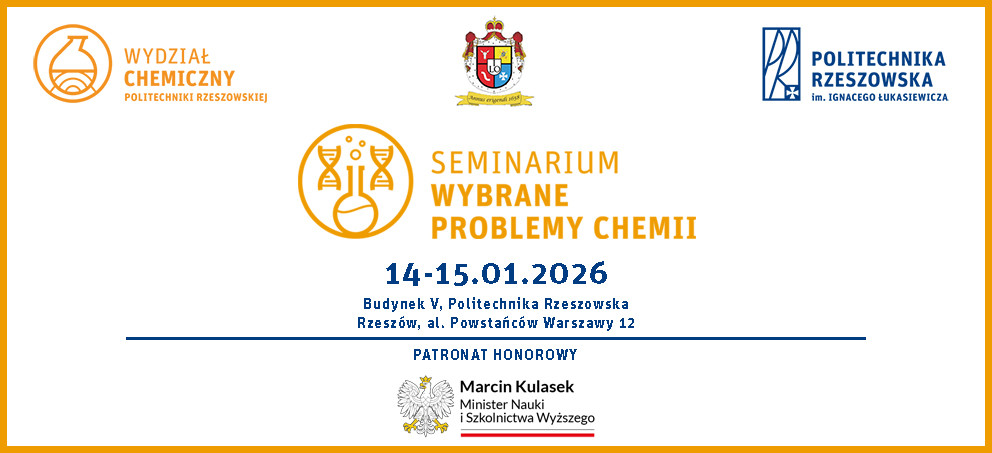 Serdecznie zapraszamy wszystkich Uczniów szkół ponadpodstawowych wraz ze swoimi Nauczycielami do udziału w 32. edycji Seminarium Wybrane Problemy Chemii organizowanego przez Wydział Chemiczny Politechniki Rzeszowskiej we współpracy z 1 Liceum Ogólnokształcącym w Rzeszowie.