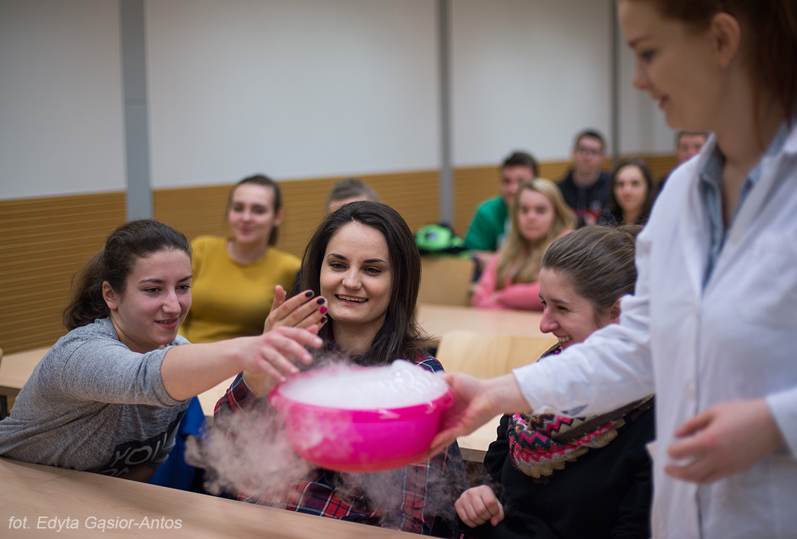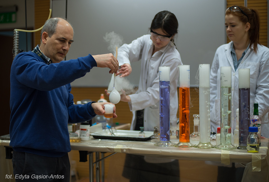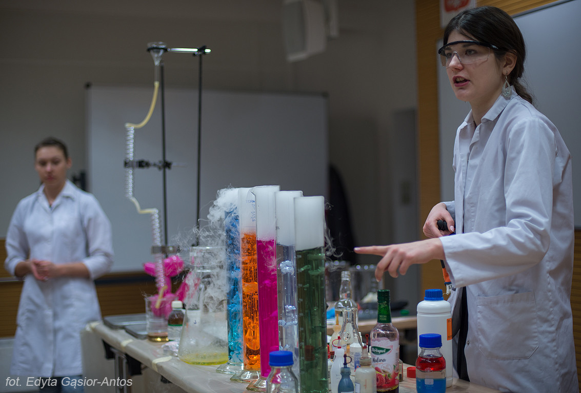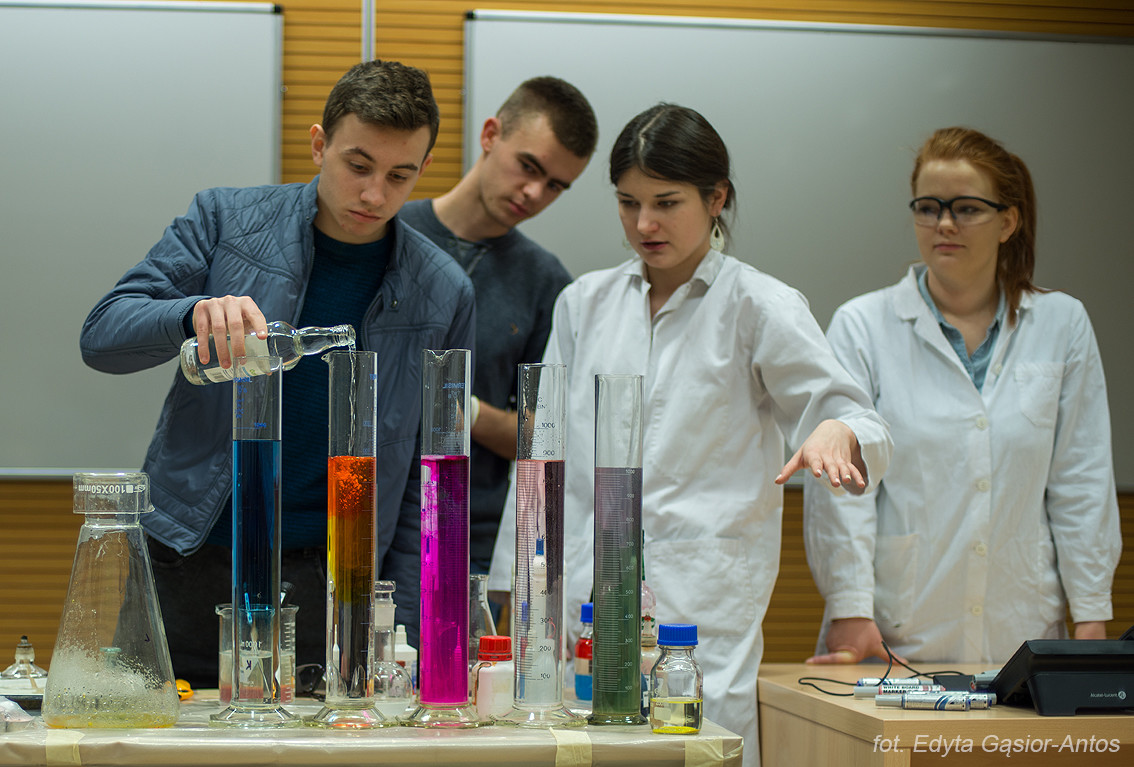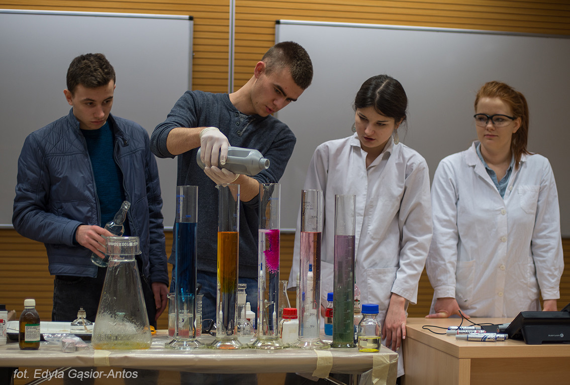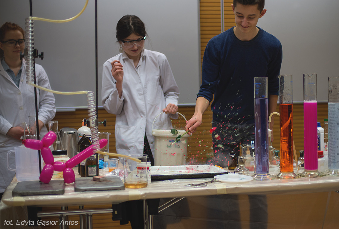 Jak zawsze w pomoc aktywnie włączyli się studenci z Kół Naukowych „Esprit” i „Insert” a także Samorząd Studencki. Na stoisku Wydziału Chemicznego uczniowie mogli zapoznać się z oferta dydaktyczną Wydziału Chemiczne a także zobaczyć namiastkę tego czym zajmują się pracownicy Wydziału. Największym zainteresowaniem cieszyły się pokazy chemiczne Koła Naukowego „Esprit” oraz stanowisko Koła „Insert”.
