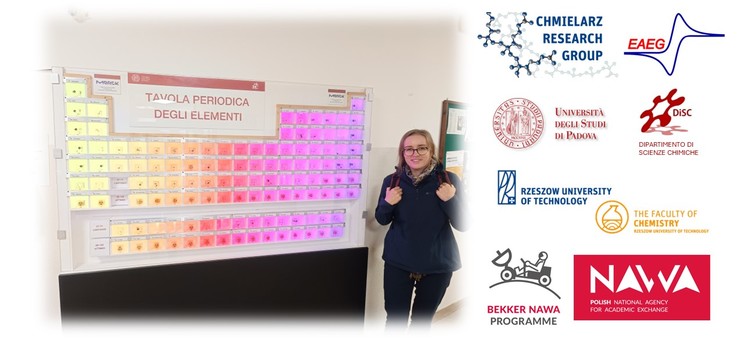 W trakcie swojego pobytu na Wydziale Nauk Chemicznych Uniwersytetu w Padwie Dr Flejszar pracowała w grupie badawczej prof. Abdirisaka Ahmeda Isse realizując prace eksperymentalne o tematyce „Charakterystyka elektrochemiczna nanowarstw szczotek polimerowych o złożonej architekturze w skali mikro- i mililitrowej”. Zespół prof. Isse, specjalizuje się w elektrochemii molekularnej, z uwzględnieniem elektrosyntezy i elektrokatalizy, a w szczególności na badaniu mechanizmów procesów elektrokatalitycznych, redukcji organicznych halogenków, mechanizmów przenoszenia elektronów oraz elektrochemicznym podejściu do kontrolowanej polimeryzacji rodnikowej kontrolowanej, co ścisłe łączy się z tematyką badań realizowanych podczas stażu. W czasie swojego pobytu Dr Flejszar wygłosiła również wykład pt.: „Surface modification of inorganic and organic materials via ATRP methods” prezentując realizowane przez nią dotychczasowe prace badawcze, a także planowane kierunki badań.