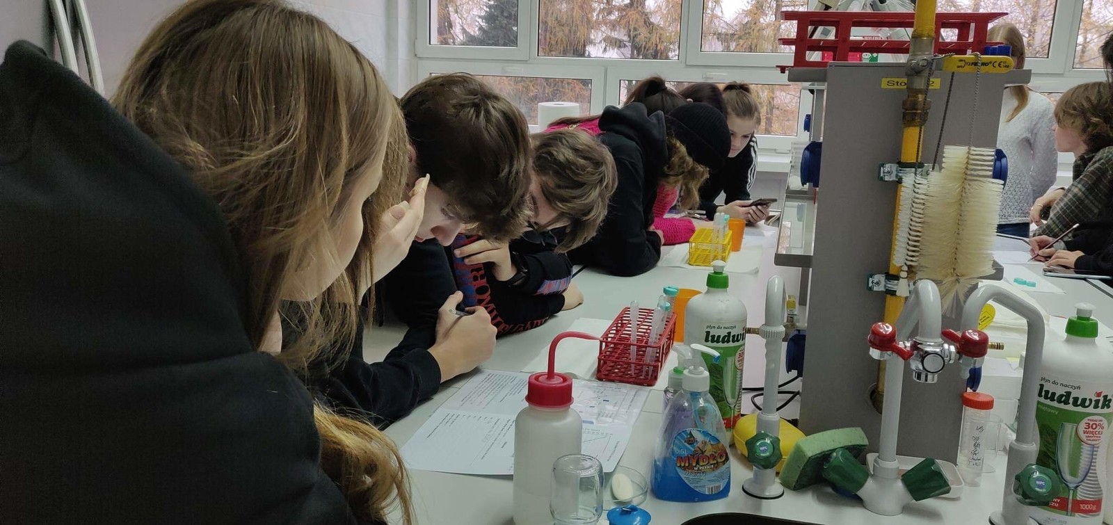 Opiekunką z ramienia szkoły była Pani mgr inż. Agnieszka Safin-Wasyłykiw – absolwentka Wydziału Chemicznego.