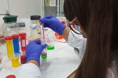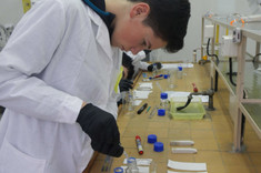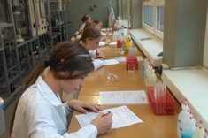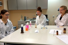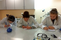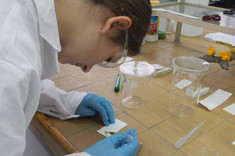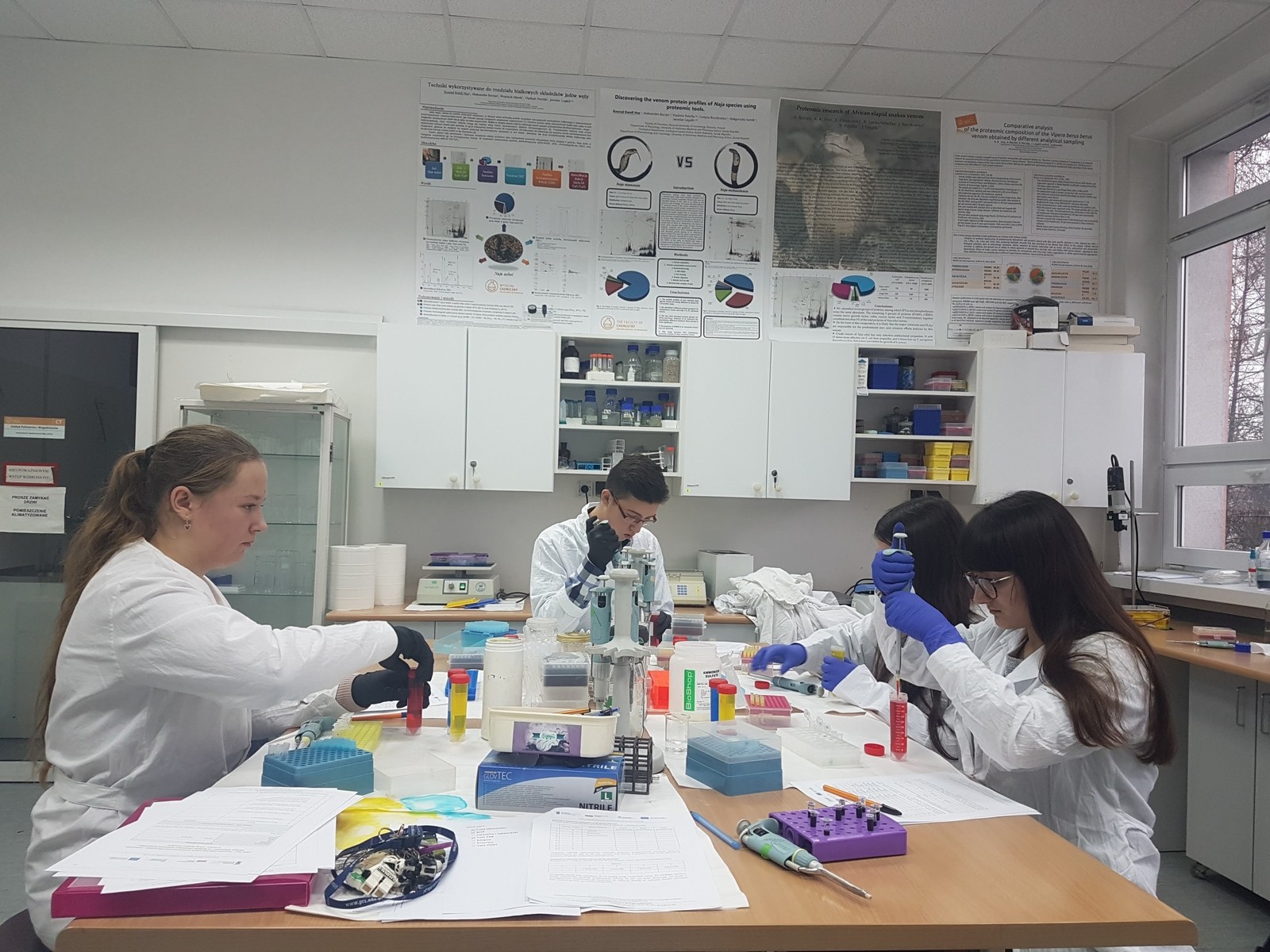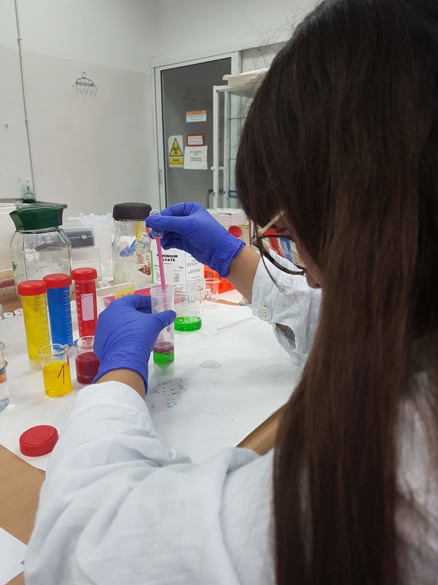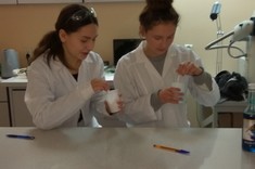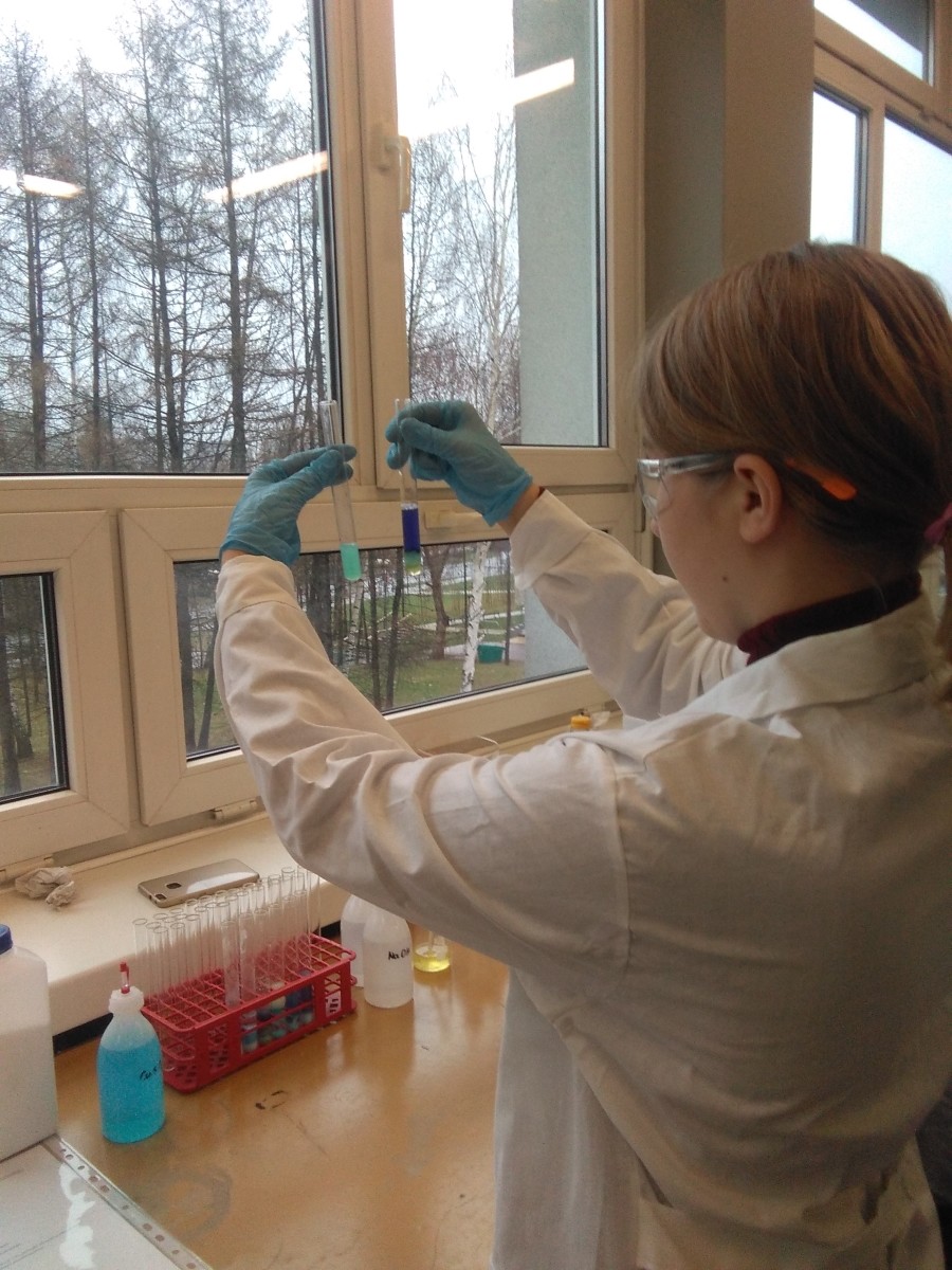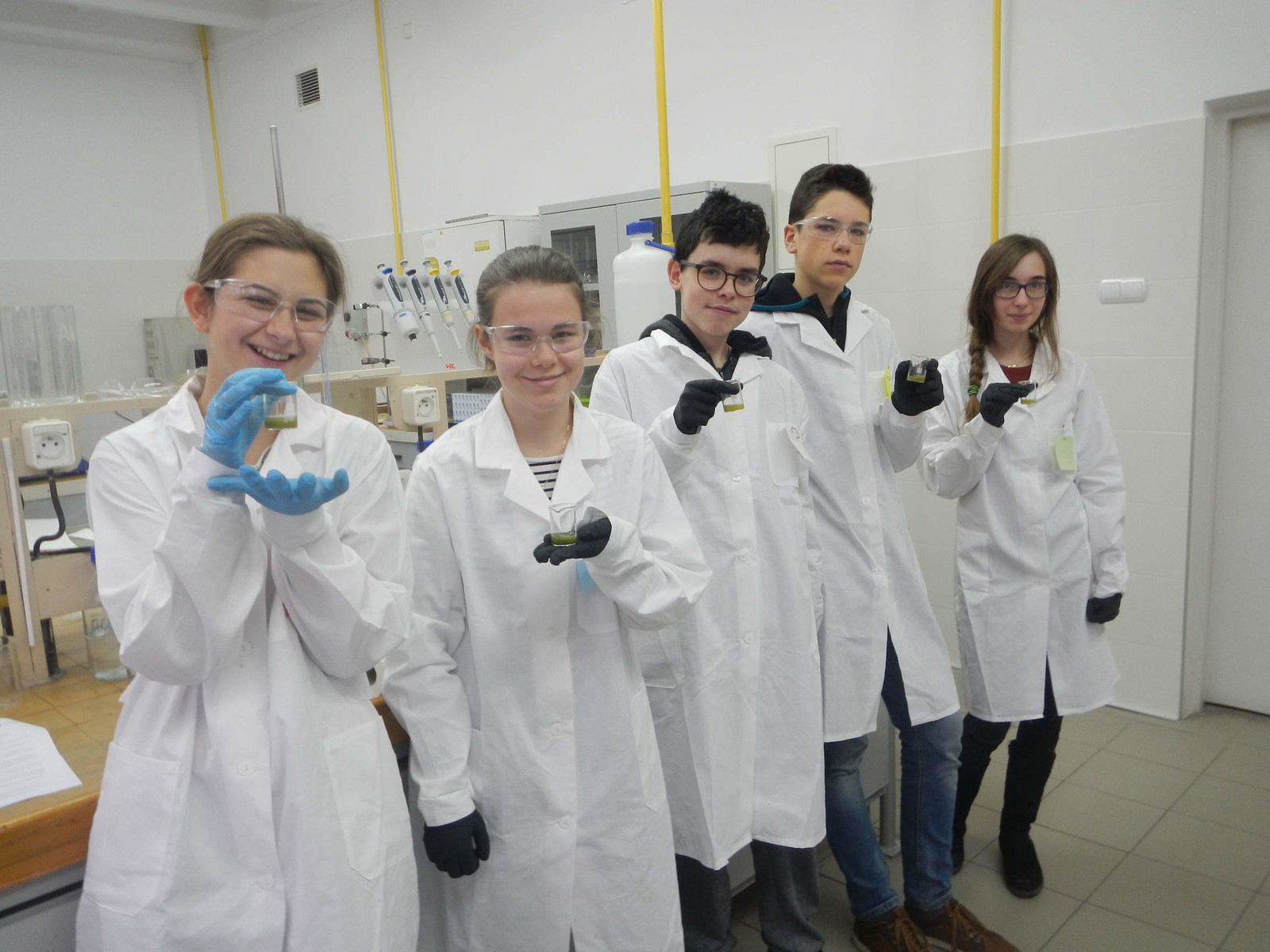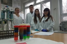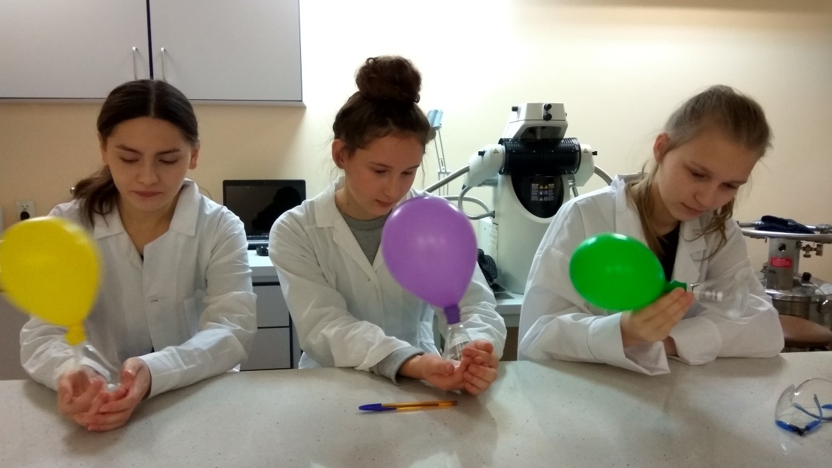 Podczas zajęć laboratoryjnych uczniowie, jak prawdziwi studenci zaopatrzeni w środki ochrony osobistej (fartuchy, okulary i rękawice), z entuzjazmem przeprowadzali ciekawe eksperymenty chemiczne pod fachowym okiem prowadzących …