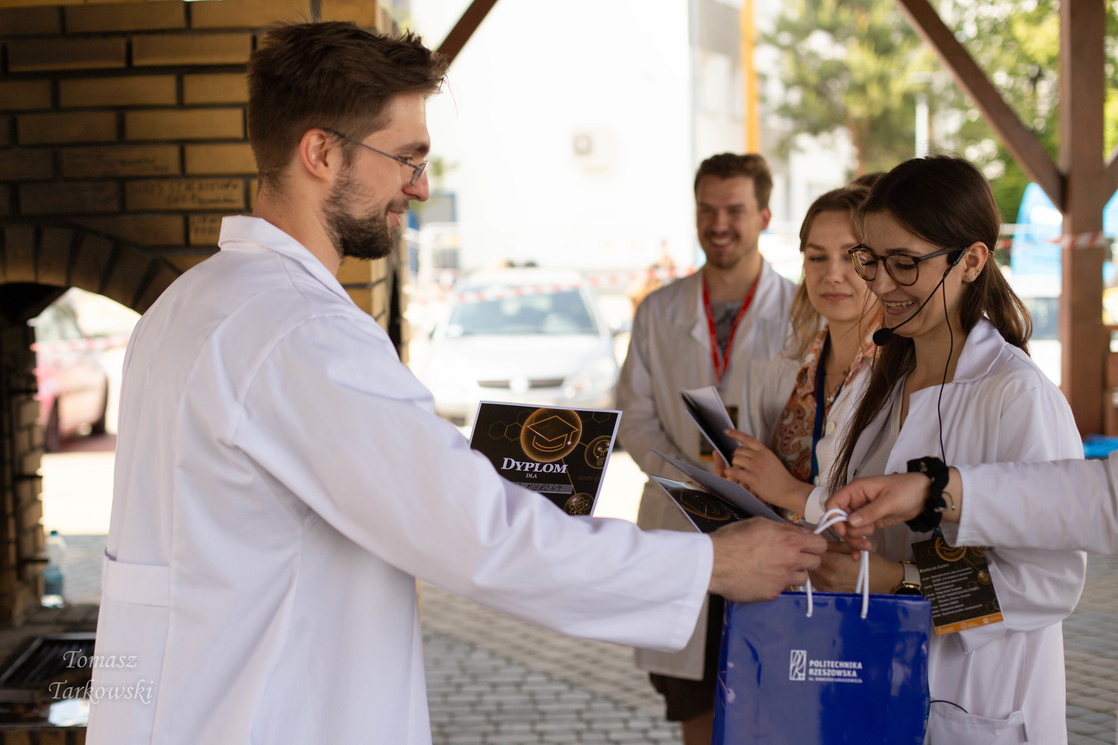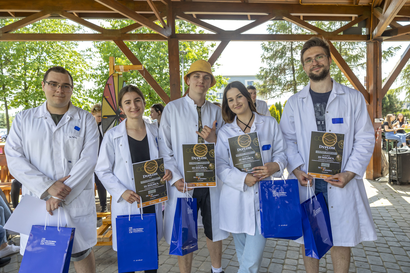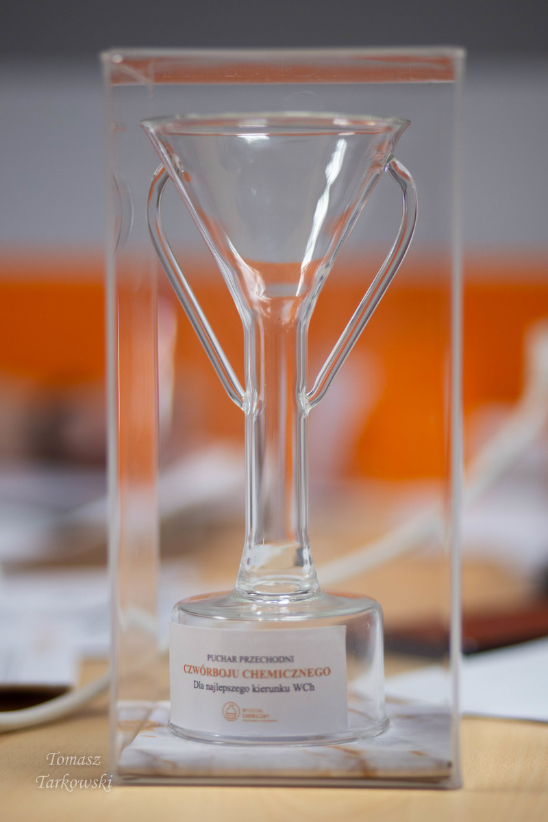 Po części zadaniowej Komisja Konkursowa wyłoniła zwycięzców „Czwórboju Chemicznego”. Wręczenie bardzo atrakcyjnych nagród (ufundowanych przez sponsorów wydarzenia) oraz Pucharu Kierunków Wydziału Chemicznego nastąpiło w plenerze, na tzw. „grzybku”.