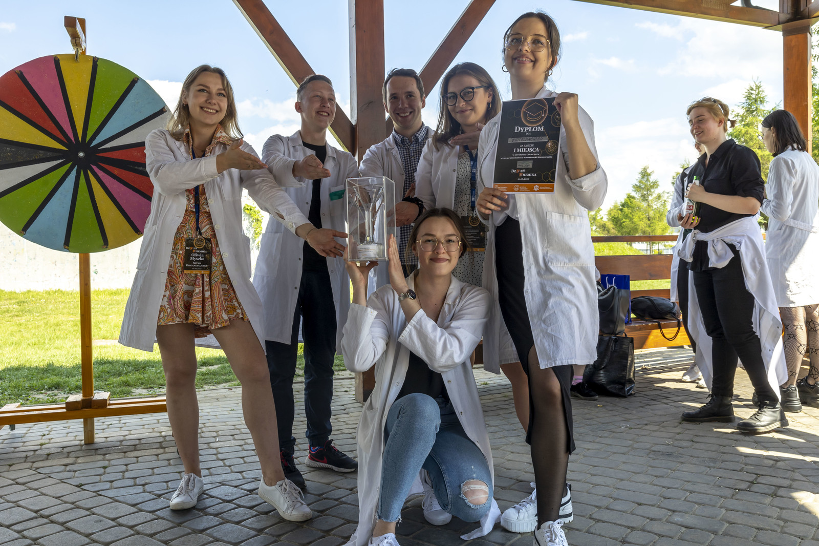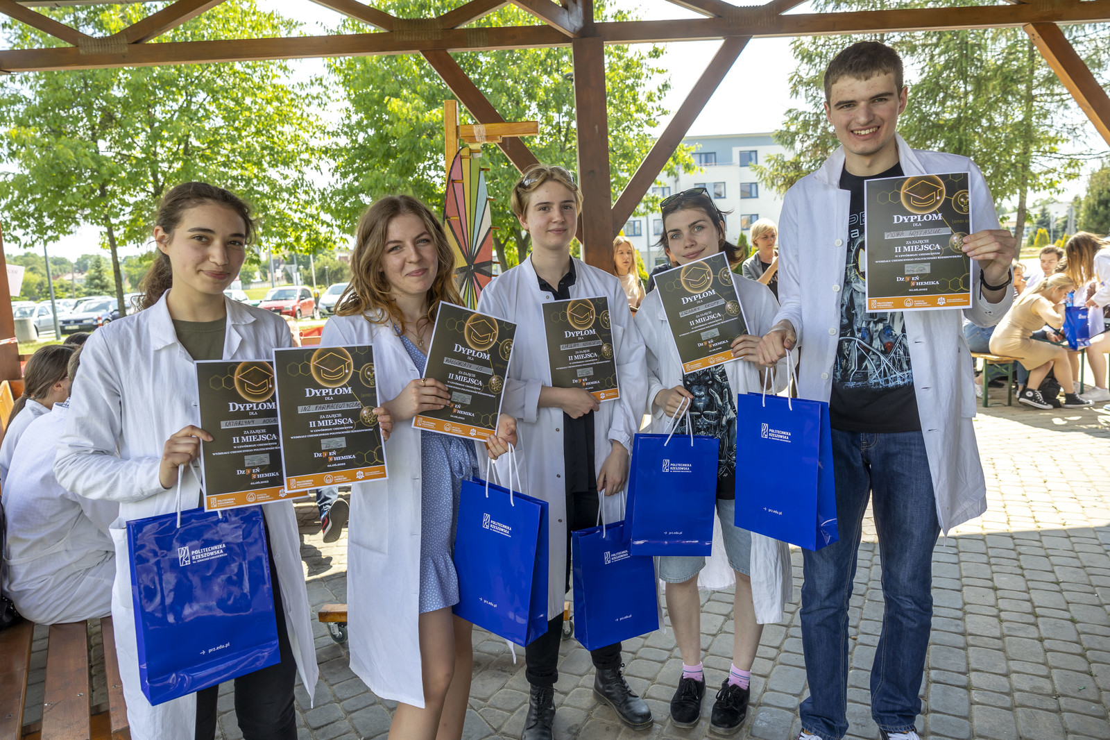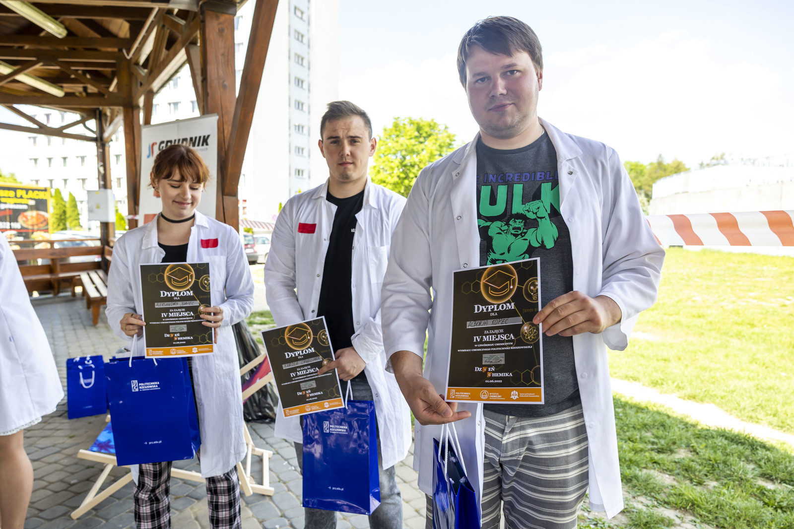 Po części zadaniowej Komisja Konkursowa wyłoniła zwycięzców „Czwórboju Chemicznego”. Wręczenie bardzo atrakcyjnych nagród (ufundowanych przez sponsorów wydarzenia) oraz Pucharu Kierunków Wydziału Chemicznego nastąpiło w plenerze, na tzw. „grzybku”.