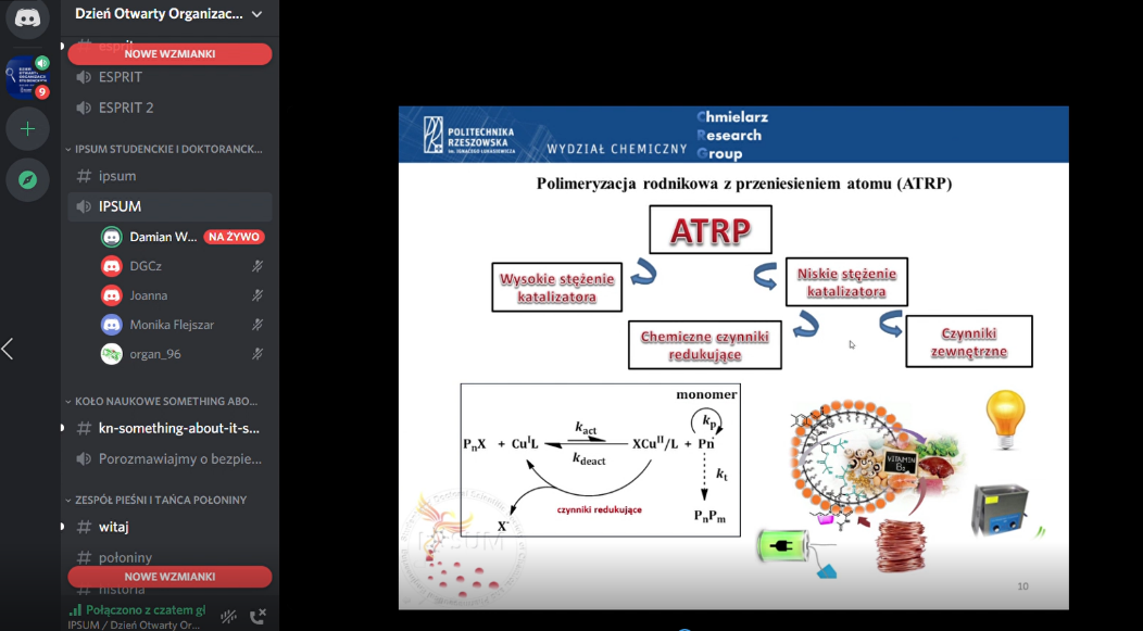 Podczas spotkania zaprezentowały się wszystkie Koła Naukowe działające na Wydziale Chemicznym: Koło Naukowe Studentów Chemii „ESPRIT”, Koło Naukowe Biotechnologów „INSERT” i Studenckie i Doktoranckie Koło Naukowe Inżynierii Chemicznej i Farmaceutycznej „IPSUM”.