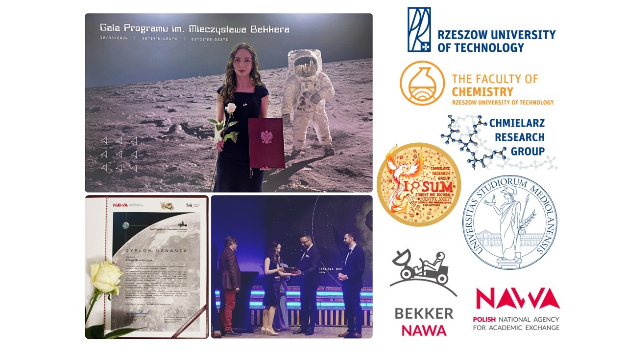 Podczas wydarzenia Minister Nauki i Szkolnictwa Wyższego, dr inż. Marcin Kulasek, oraz dyrektor NAWA dr Wojciech Karczewski wręczyli wyróżnienia dla 109 tegorocznych laureatów programu, w których gronie znalazła się mgr inż. Kinga Siewierska z grupy badawczej prof. dr hab. inż. Pawła Chmielarza (Chmielarz Research Group), która dzięki stypendium zrealizuje staż badawczy w grupie prof. Elisabetty Ranucci na Uniwersytecie w Mediolanie (Università degli Studi di Milano).