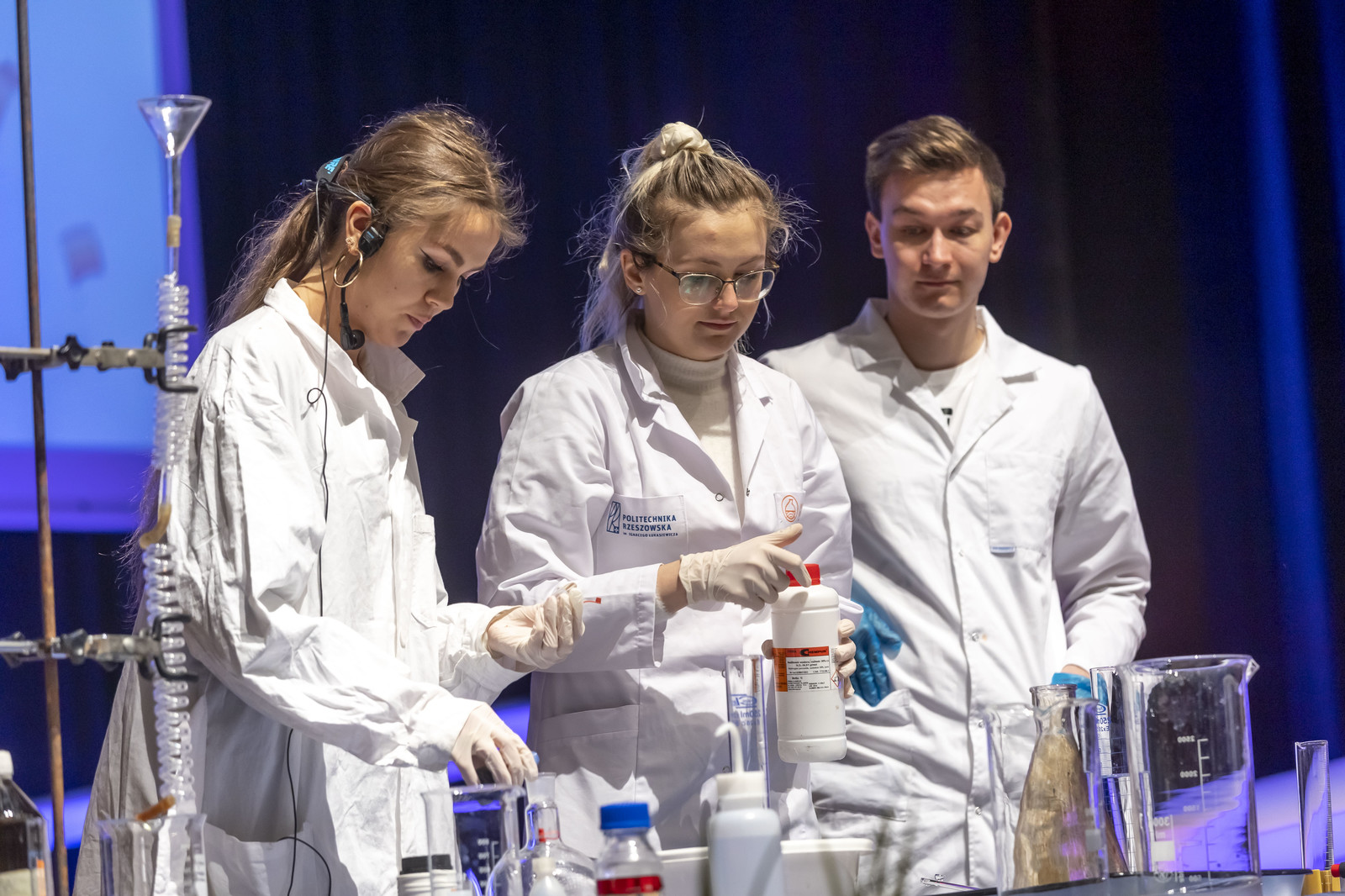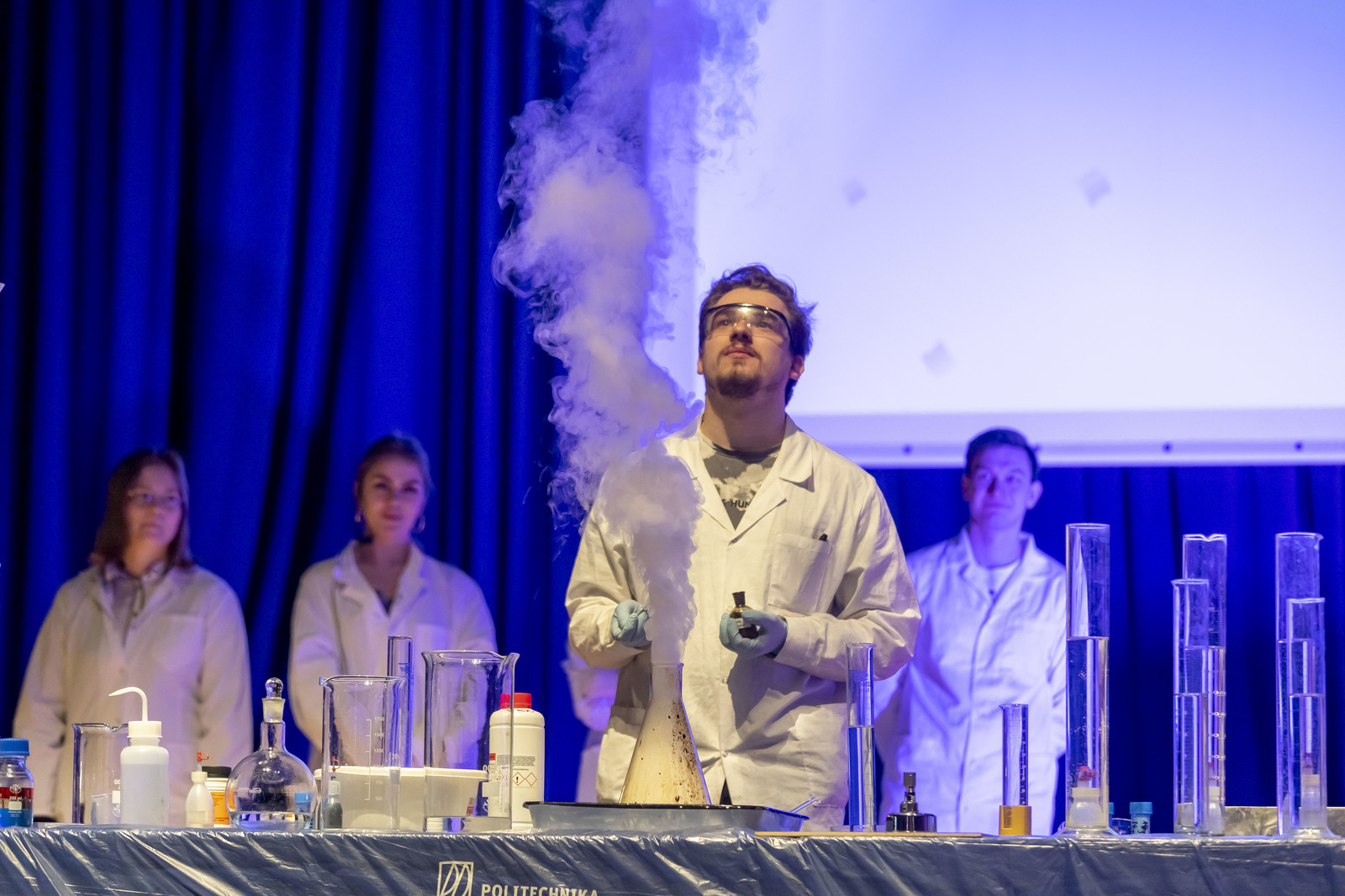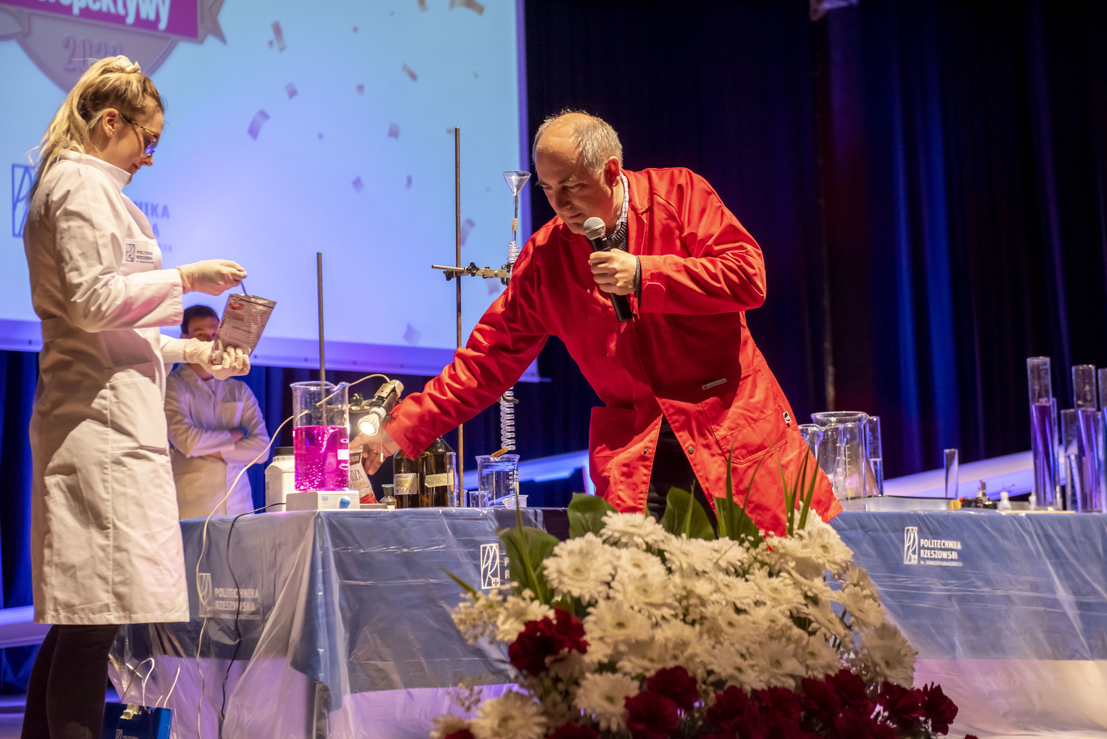 Podczas gali widowiskowe pokazy chemiczne przeprowadził prof. dr hab. inż. Wiktor Bukowski wraz ze studentami Koła Naukowego „Esprit” działającego na Wydziale Chemicznym.