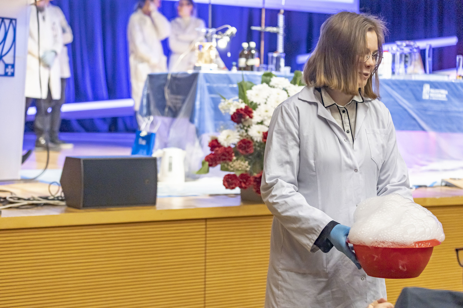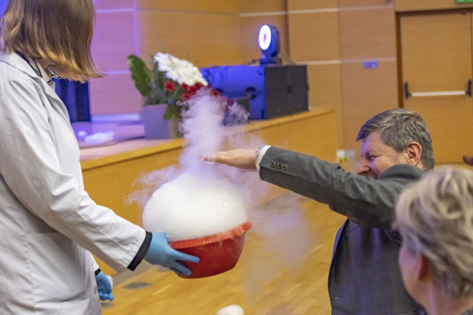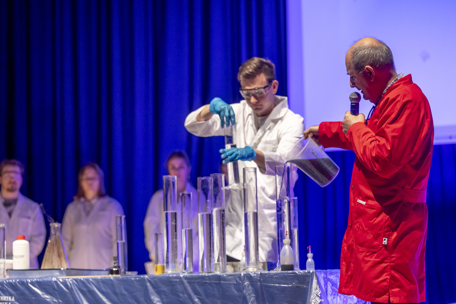 Podczas gali widowiskowe pokazy chemiczne przeprowadził prof. dr hab. inż. Wiktor Bukowski wraz ze studentami Koła Naukowego „Esprit” działającego na Wydziale Chemicznym.