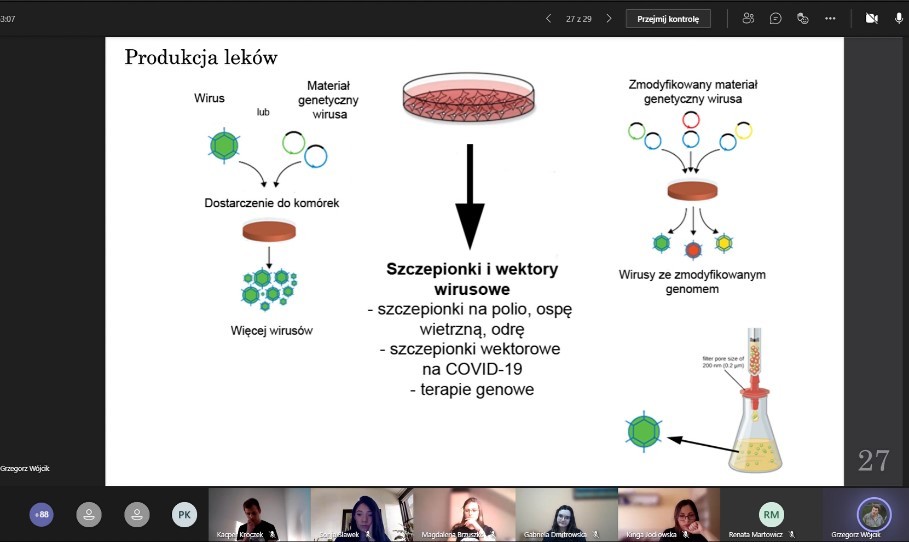 W dniu 26 kwietnia br. odbyło się kolejne spotkanie z wyjątkowego cyklu „Warsztaty dla szkół średnich”. Wydarzenie w formule on-line pod tytułem "Hodowle ludzkich komórek - narządzie do badań biotechnologicznych".