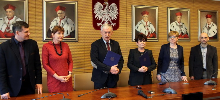W spotkaniu uczestniczyli rektor PRz prof. Tadeusz Markowski, dyrektor IV LO w Rzeszowie mgr Danuta Stępień, prorektor ds. nauki prof. Grzegorz Budzik, prorektor ds. rozwoju i kontaktów z gospodarką prof. PRz Mariusz Oleksy oraz dziekan WCh prof. Dorota Antos i dziekan WMiFS prof. PRz Iwona Włoch - przedstawiciele jednostek, które będą współpracować z rzeszowskim liceum.