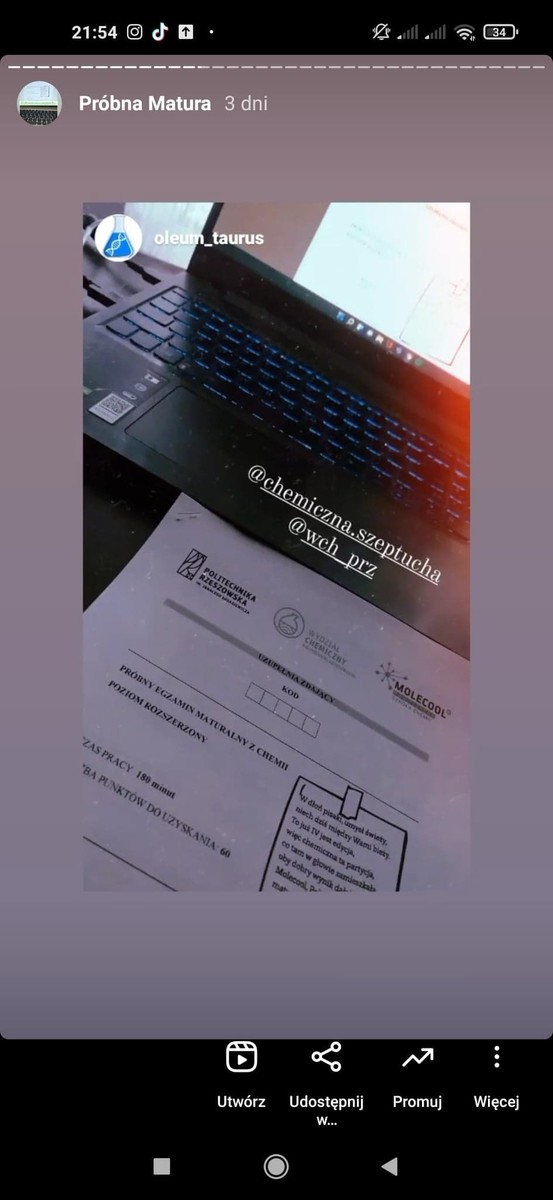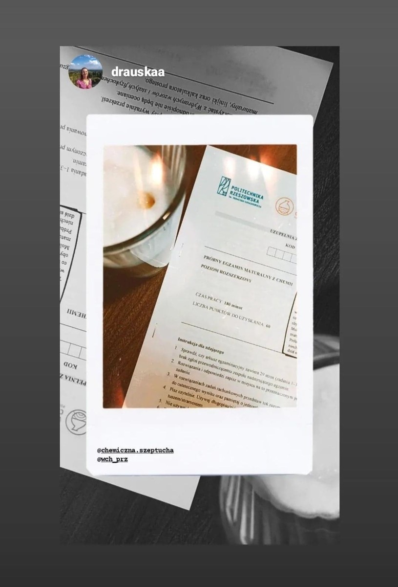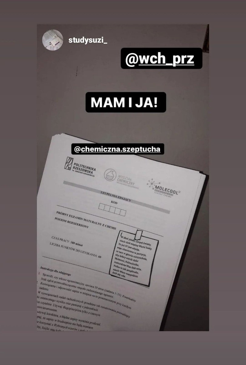 Wszystkim maturzystom, którzy uczestniczyli w maturze próbnej serdecznie dziękujemy za udział i liczymy, iż dołączycie do grona studentów Wydziału Chemicznego Politechniki Rzeszowskiej w niedalekiej przyszłości….