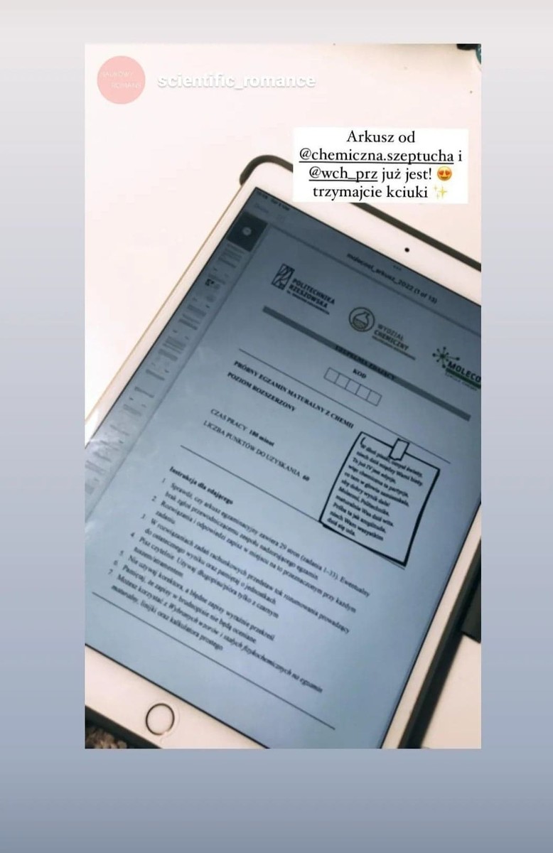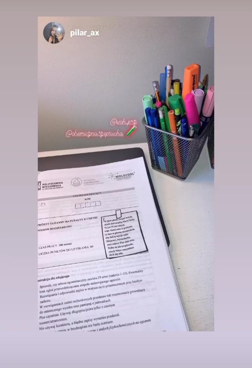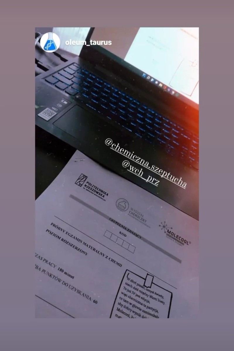W dniu 5 marca 2022 r. odbyła się próbna matura z chemii – wspólne przedsięwzięcie Wydziału Chemicznego i rzeszowskiej Nowoczesnej Szkoły Chemii „Molecool”. To już trzecia edycja wydarzenia organizowanego cyklicznie w pierwszą sobotę marca, w przededniu Dnia Kobiet.
