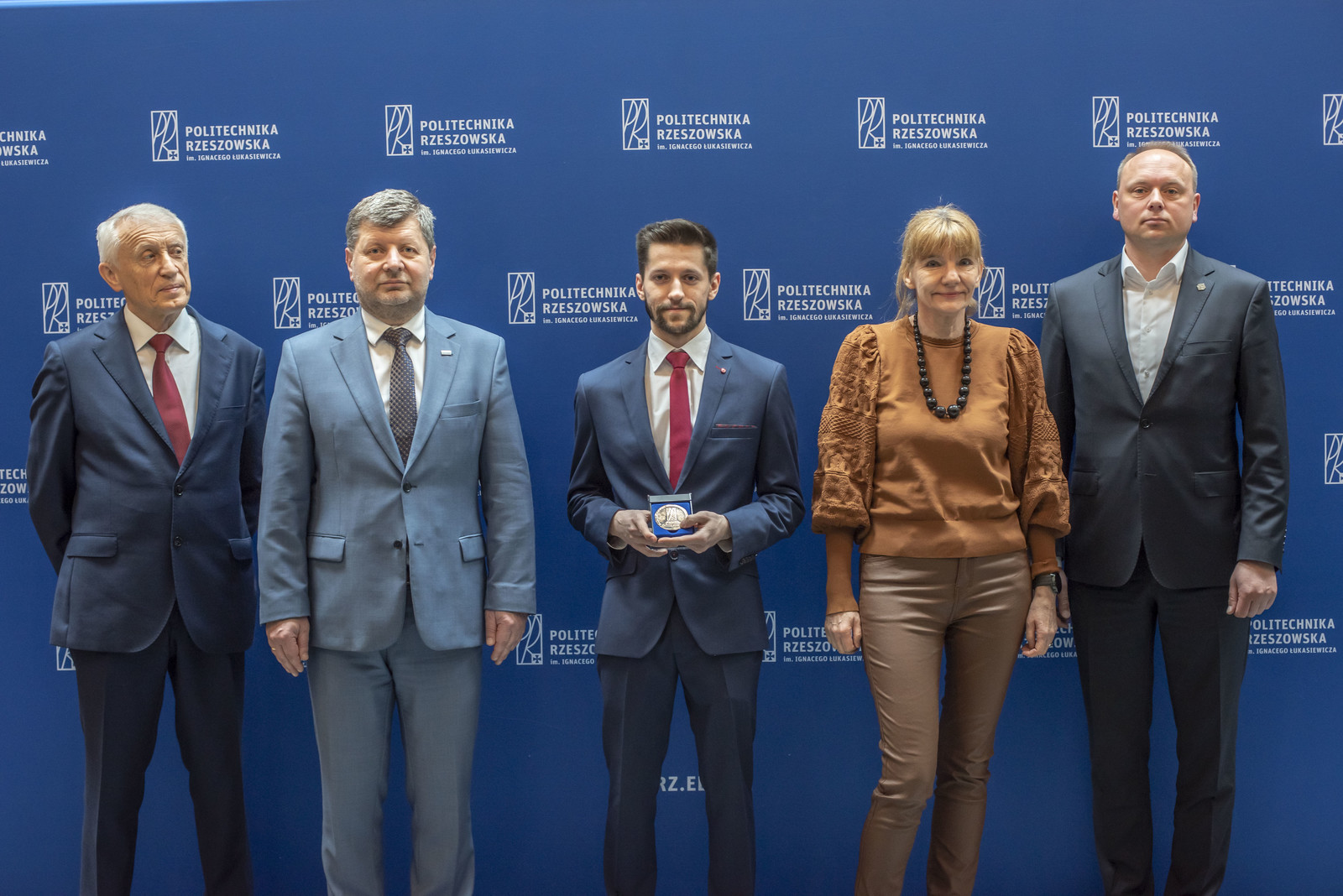 Medale „Primus Inter Pares” dla najlepszych absolwentów w roku akademickim 2020/2021 wręczyli przewodniczący Rady Fundacji Roman Krzystyniak, prezes Zarządu Fundacji Grzegorz Król i rektor prof. dr. hab. inż. Piotr Koszelnik. Uroczystość odbyła się 28 kwietna br. podczas posiedzenia Senatu Politechniki Rzeszowskiej.