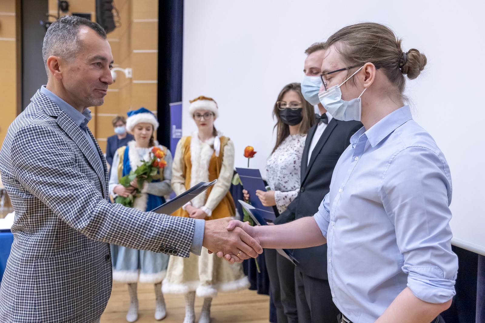 Podczas uroczystości prorektor ds. kształcenia dr hab. Iwona Włoch, prof. PRz oraz prorektor ds. studenckich prof. dr hab. Grzegorz Ostasz wręczyli listy gratulacyjne studentom, którzy wyróżniająco angażowali się w działalność organizacyjną w roku akad. 2020/21. Nagrody stanowią podsumowanie całorocznego zaangażowania studentów w życie uczelni.