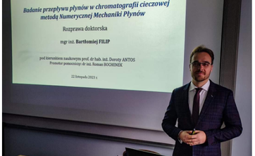 W dniu 22 listopada br. mgr inż. Bartłomiej Filip obronił pracę doktorską pt: „Badanie przepływu płynów w chromatografii cieczowej metodą Numerycznej Mechaniki Płynów"