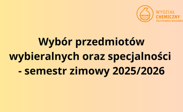 Wybór specjalności na studiach I i II stopnia oraz przedmiotów wybieralnych realizowanych na studiach I stopnia w semestrze zimowym roku akademickiego 2025/2026