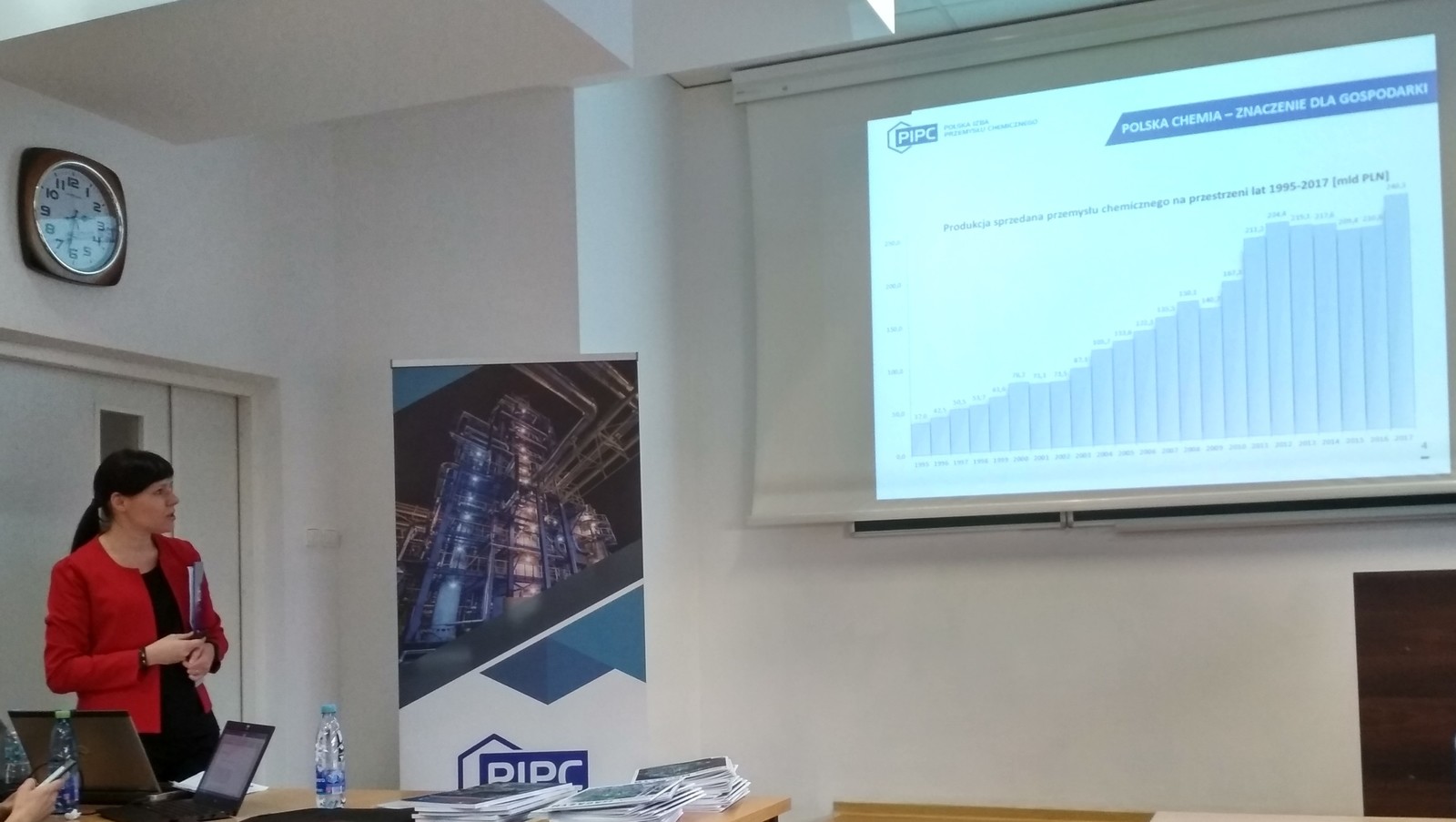 W dniu 14 listopada 2018 r .odbyło się seminarium zorganizowane przez Polską Izbę Przemysłu Chemicznego, w ramach programu ChemHR, na temat polskiego sektora chemicznego. O sytuacji w tej branży, stojących przed nią wyzwaniach, perspektywach, trendach konsumenckich i rynkowych mówiła dr inż. Anna Zalewska, która zajmuje się w PIPC zagadnieniami z zakresu materiałów polimerowych, gospodarki obiegu zamkniętego, klasyfikacji substancji chemicznych, paliw alternatywnych, a także regulacji związanych z ochroną pozycji konkurencyjnej przemysłu chemicznego, edukacją i kształceniem, innowacjami. W trakcie seminarium wskazywano na powiązania chemii z innymi sektorami, rolę jaką branża odgrywa w gospodarce i codziennym życiu. Uczestnicy seminarium mogli poznać możliwości zatrudnienia absolwentów wydziałów chemicznych i oczekiwań jakie mają pracodawcy w stosunku do przyjmowanych pracowników.