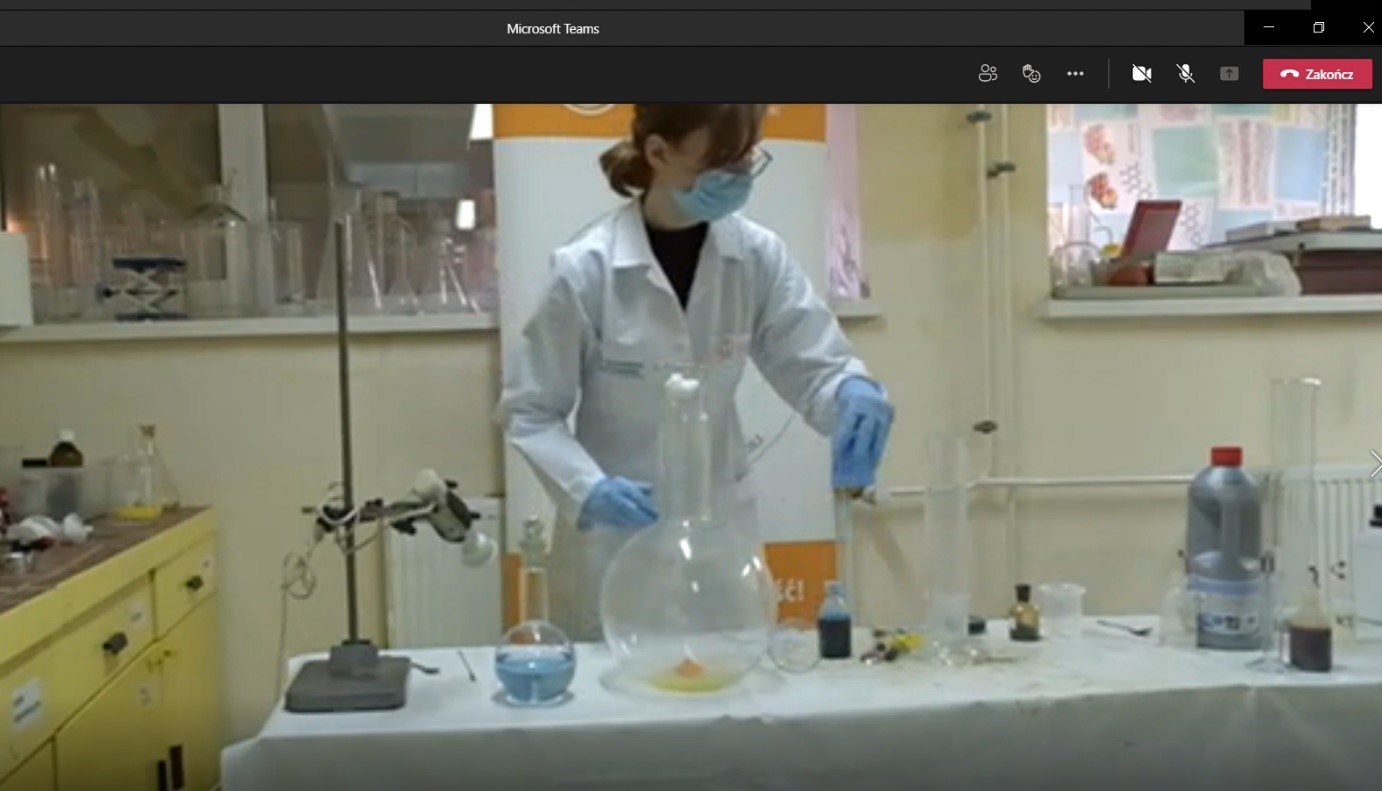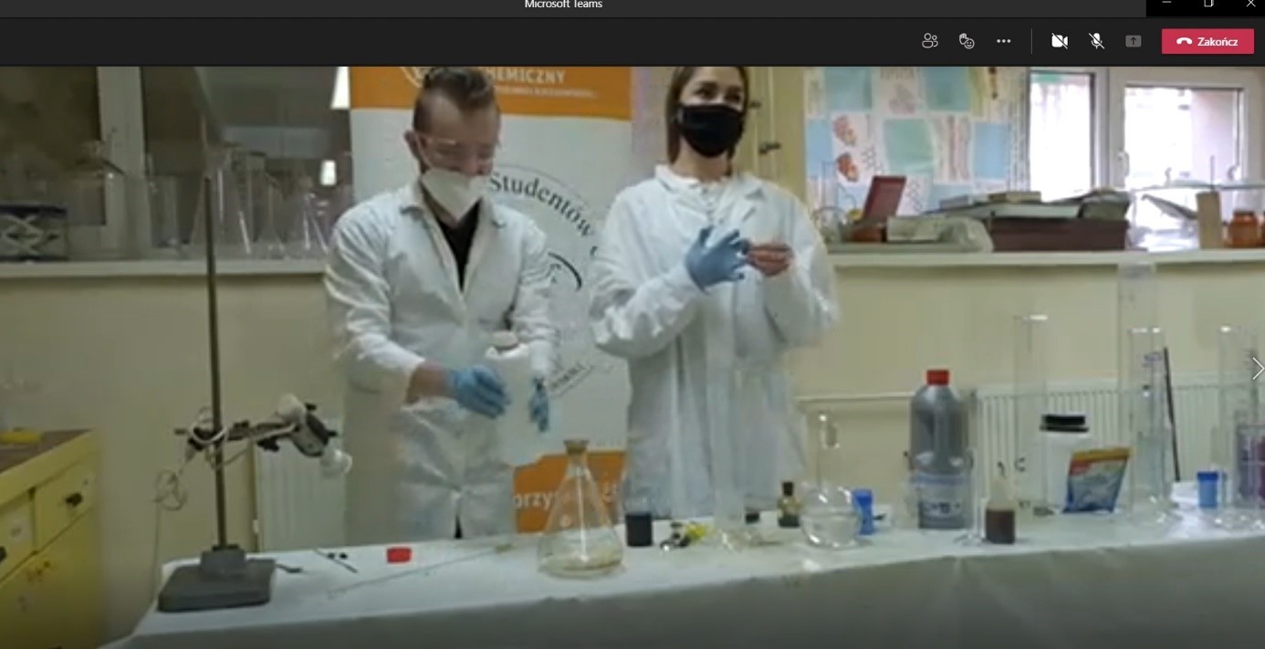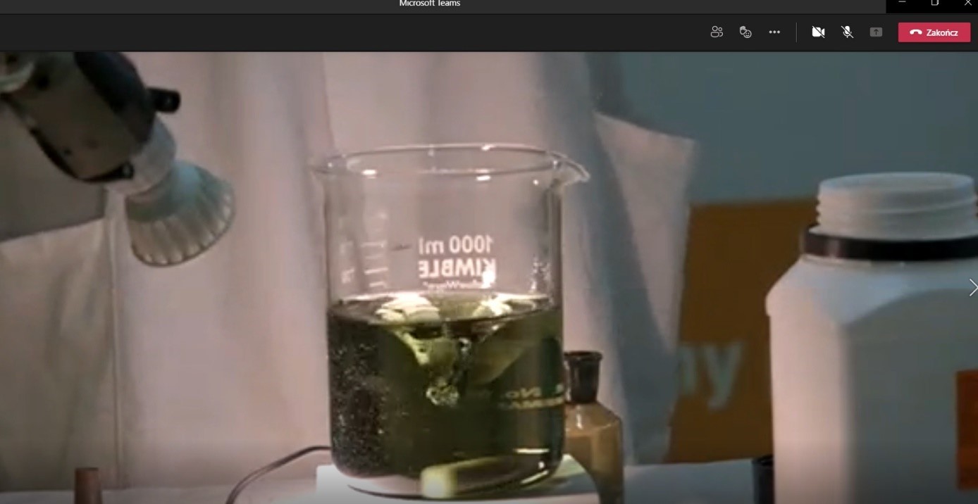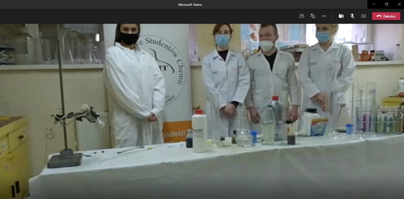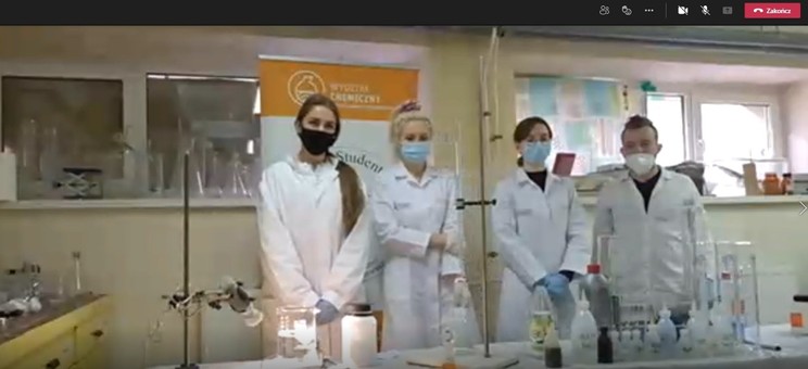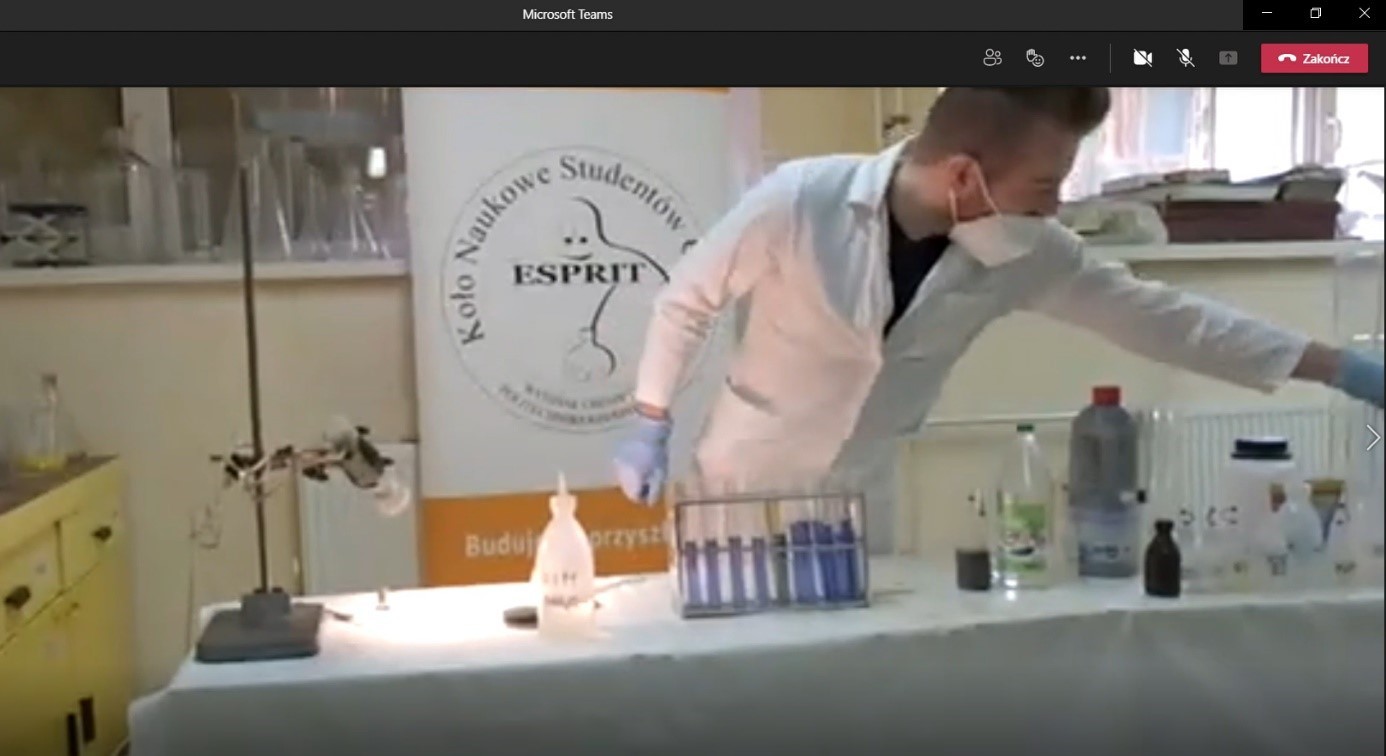 Wydarzenie w formule on-line pod tytułem „Pokazy obejmujące wybrane problemy z chemii” zostało przeprowadzone przez studentów pracujących w Kole Naukowym Studentów Chemii.