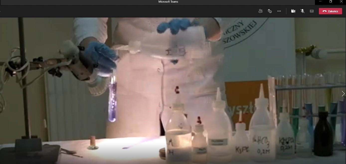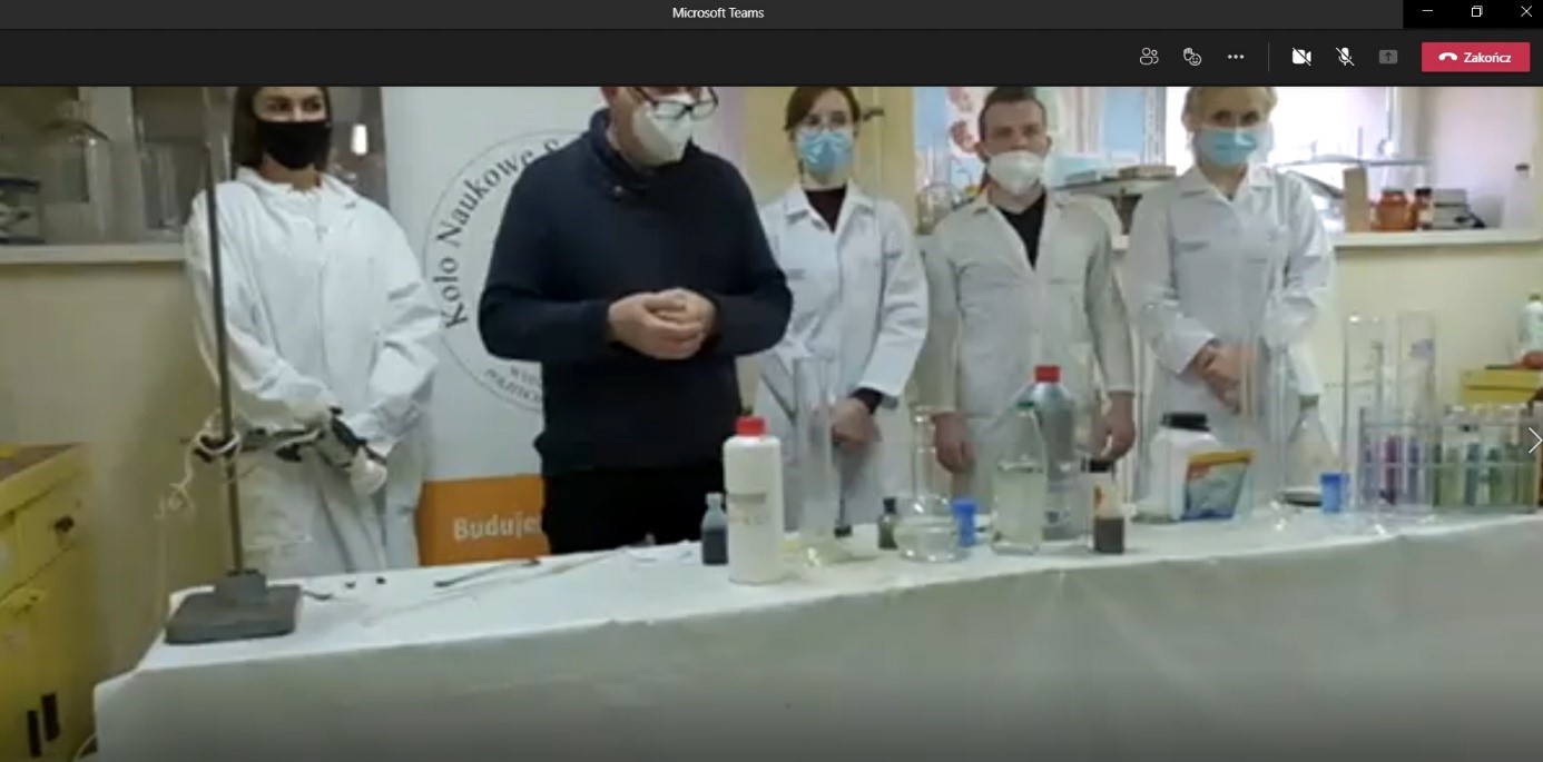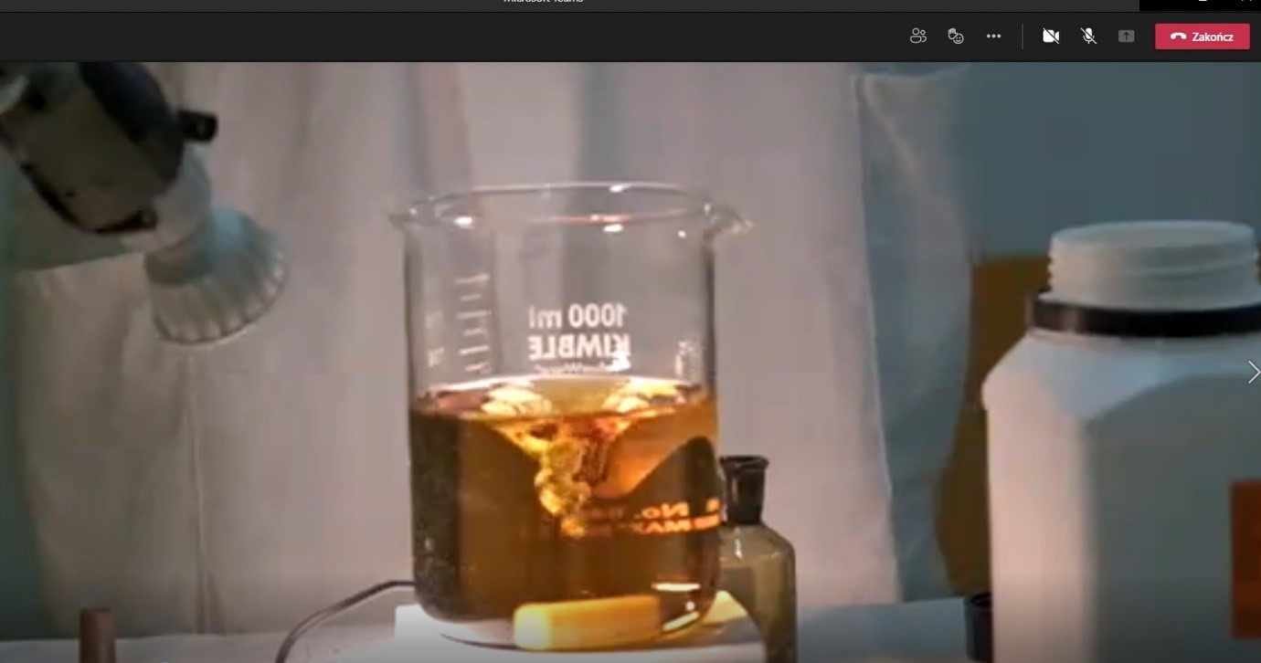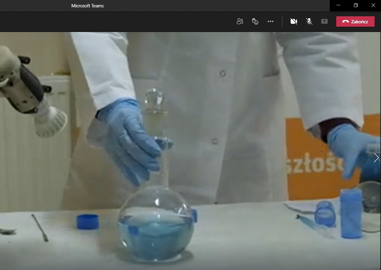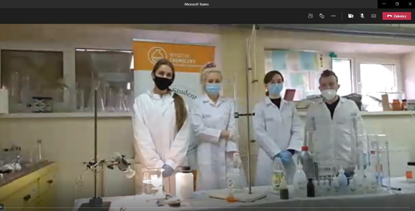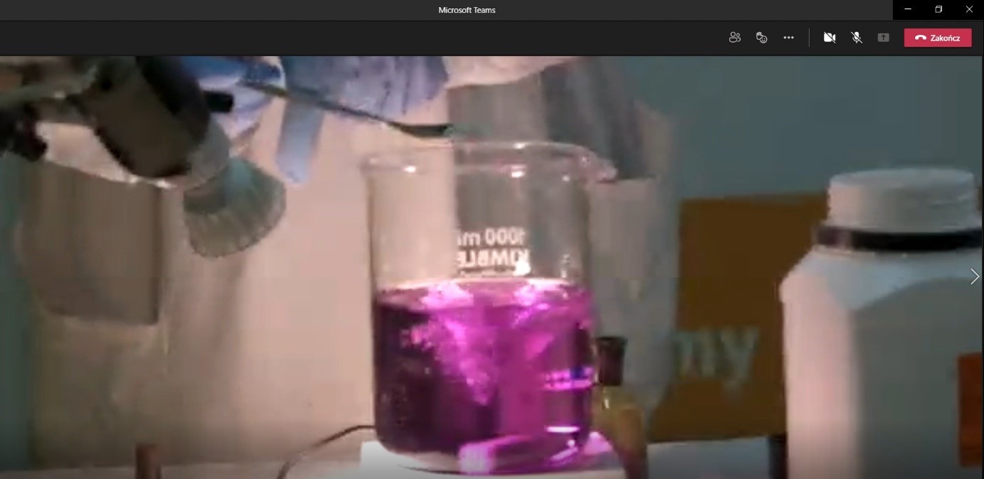 Wydarzenie w formule on-line pod tytułem „Pokazy obejmujące wybrane problemy z chemii” zostało przeprowadzone przez studentów pracujących w Kole Naukowym Studentów Chemii.