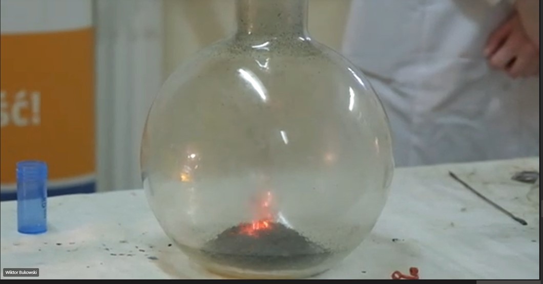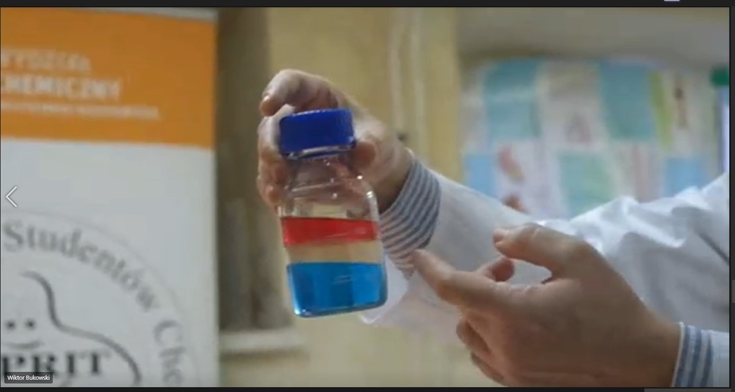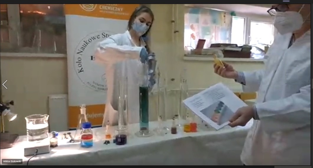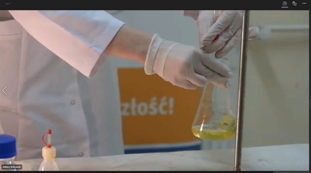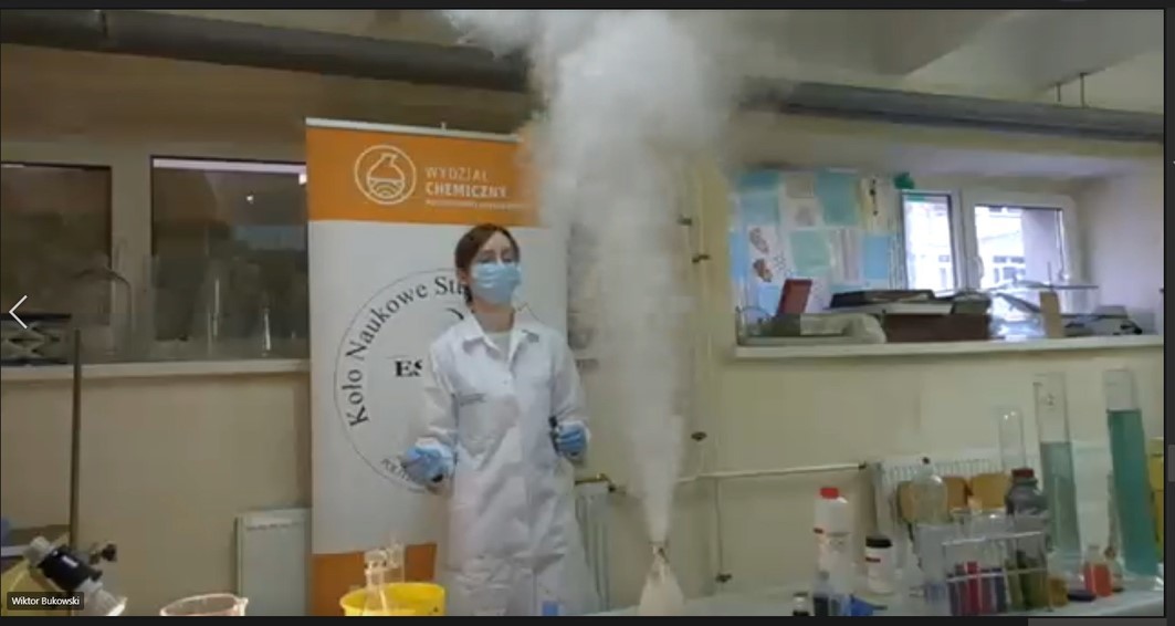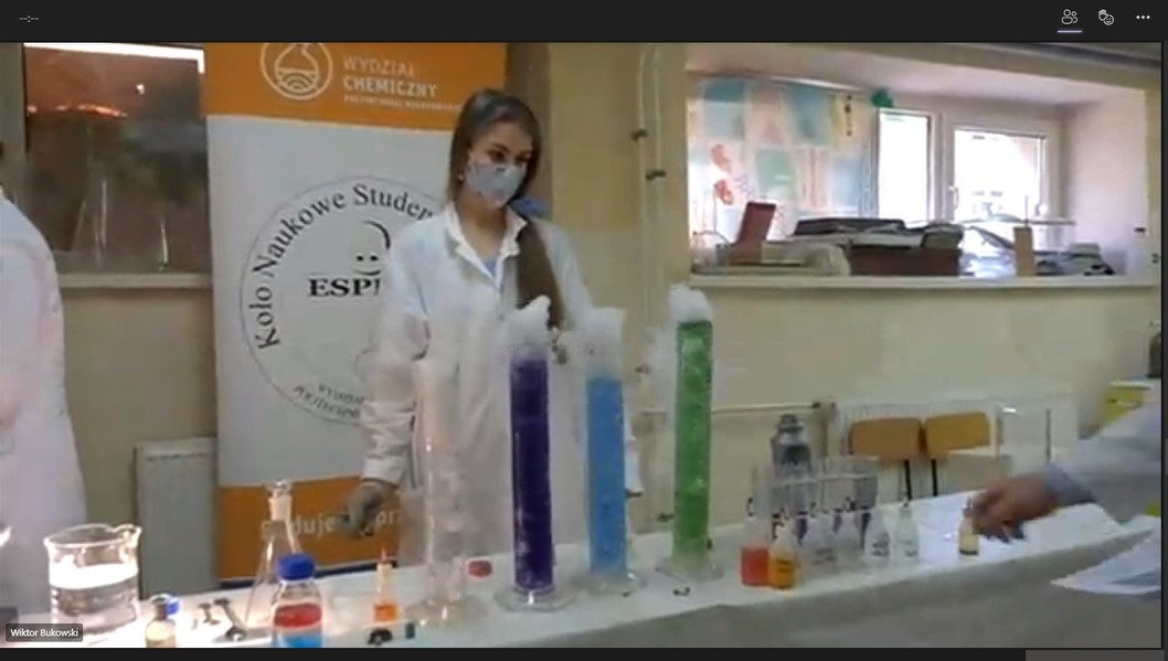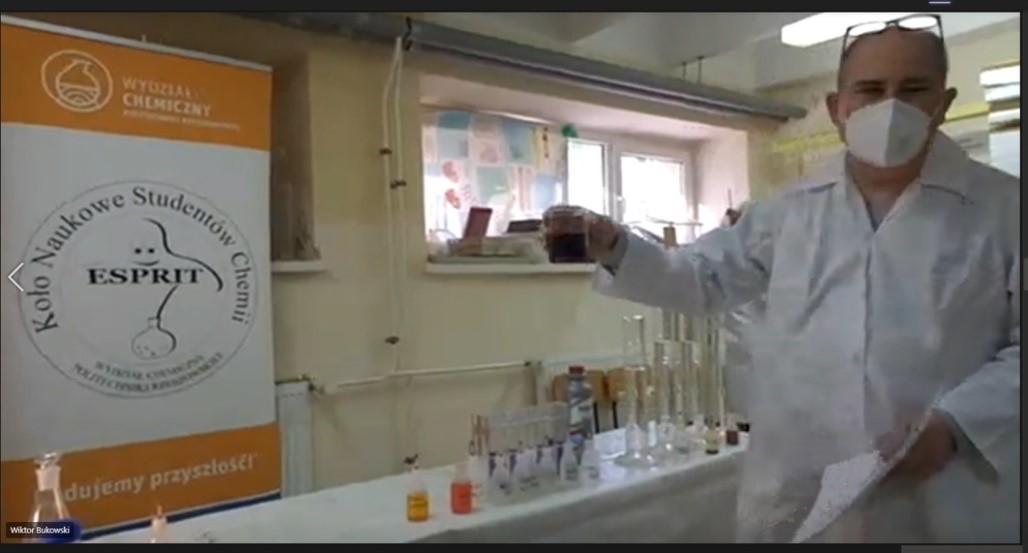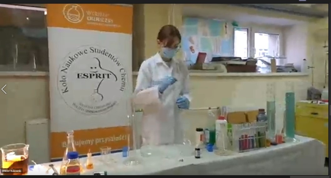 W dniu 27.04.2021 r. studenci Koła Naukowego „ESPRIT” w odpowiedzi na liczne prośby przeprowadzili ponownie warsztaty obejmujące „Pokazy obejmujące wybrane problemy z chemii”.