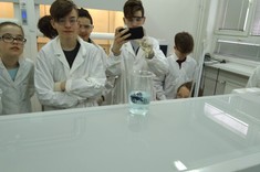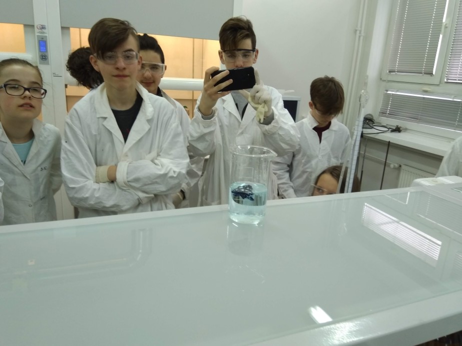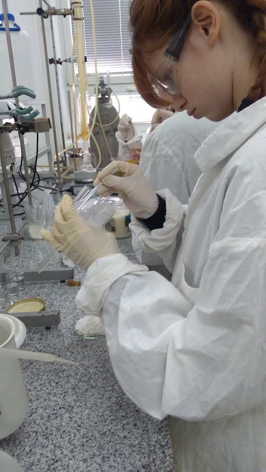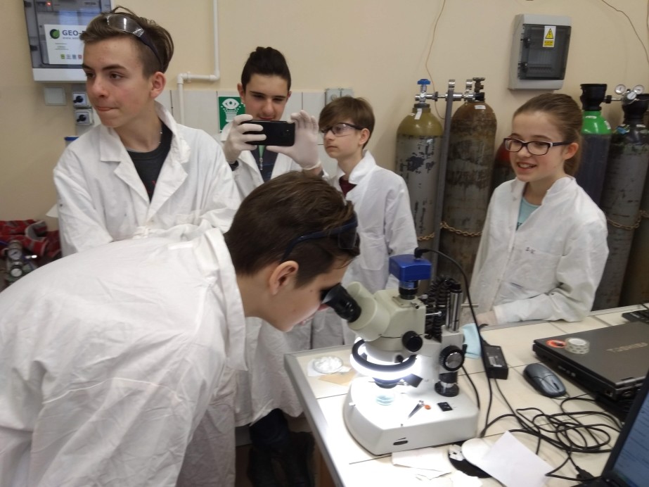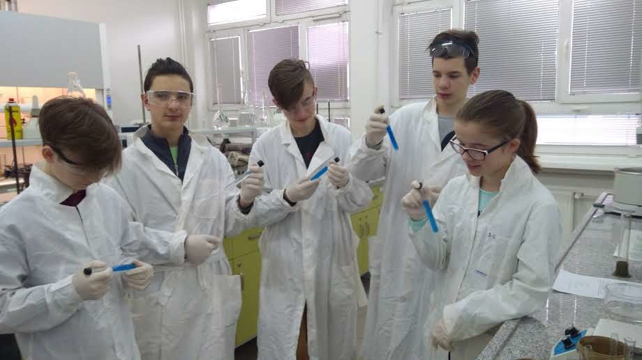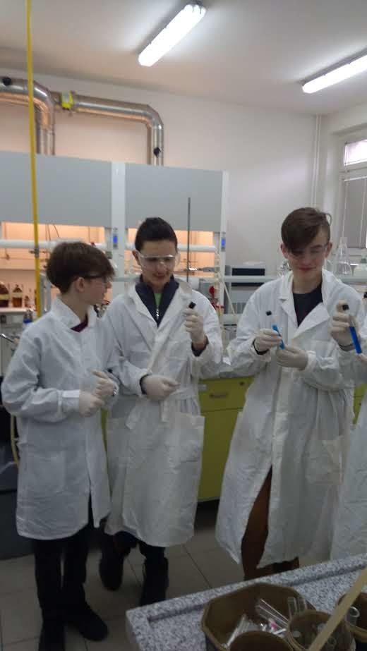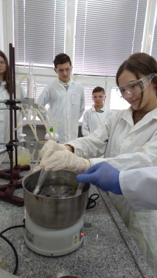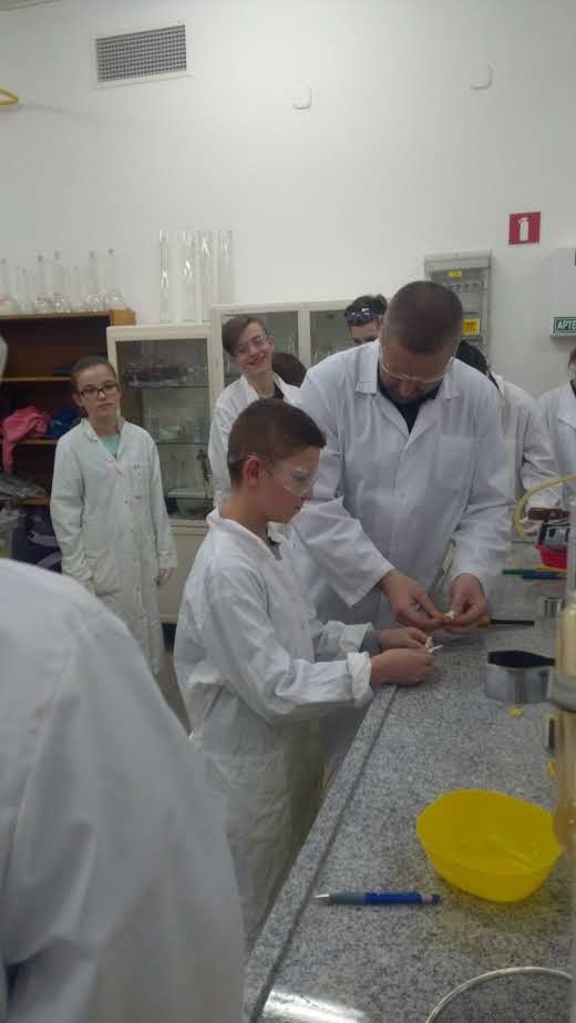 Podczas zajęć laboratoryjnych uczniowie, jak prawdziwi studenci, zaopatrzeni w środki ochrony osobistej (fartuchy, okulary i rękawice), z entuzjazmem samodzielnie przeprowadzali ciekawe eksperymenty chemiczne pod fachowym okiem trenerów – na co dzień nauczycieli akademickich Wydziału Chemicznego.