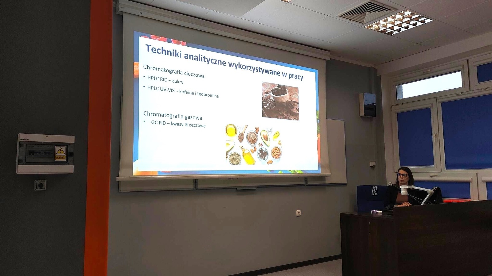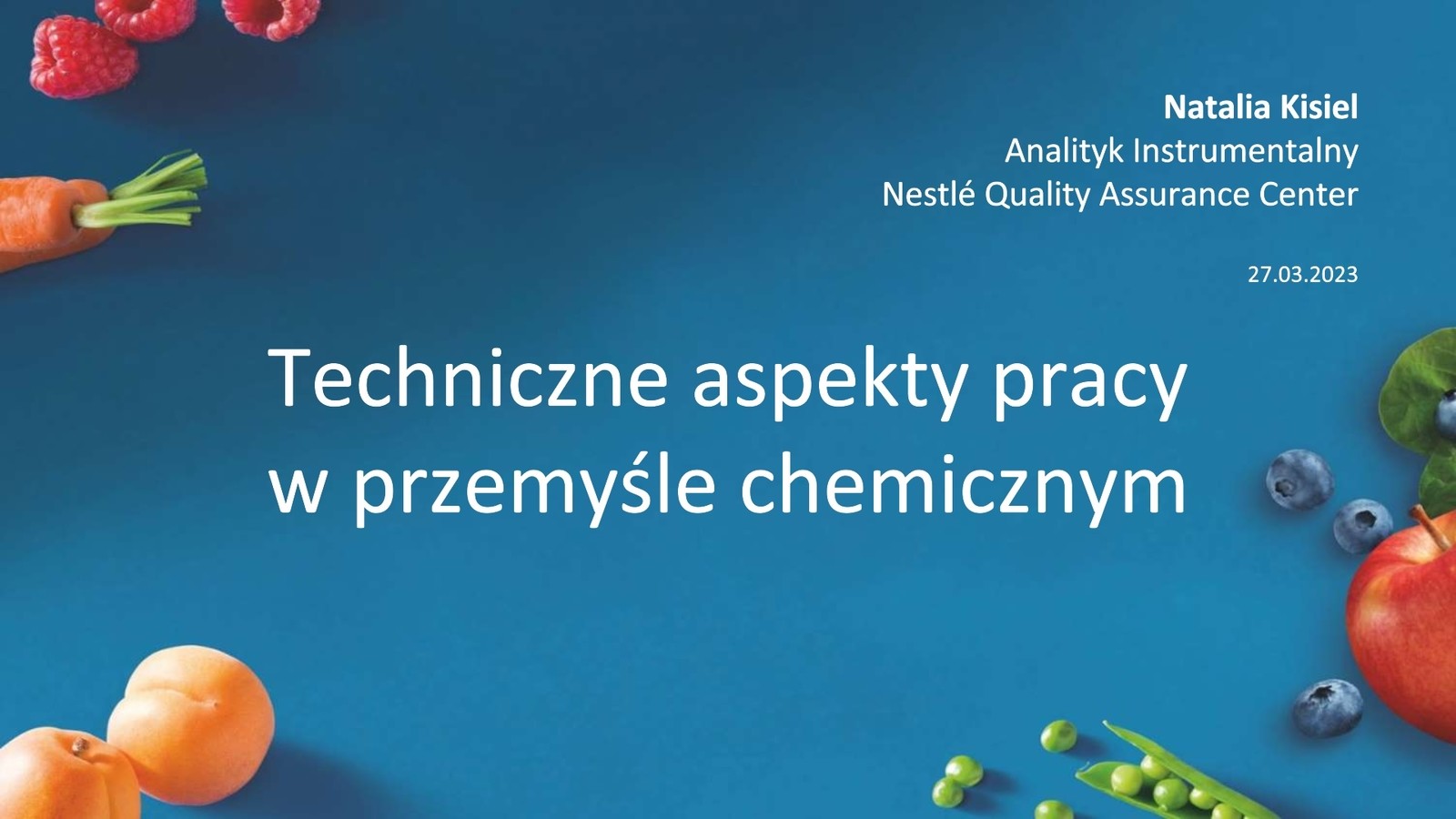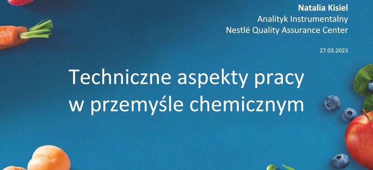 Podczas wykładu zatytułowanego "Techniczne aspekty pracy w przemyśle chemicznym" mgr inż. Natalia Kisiel, specjalistka najwyższej klasy w zakresie analizy żywności dla niemowląt i małych dzieci, chętnie podzieliła się całym spektrum swojej wiedzy i doświadczenia, co pozwoliło studentom na uświadomienie sobie ile pracy należy włożyć, żeby zweryfikować, że jakość ulubionego warzywa Królika Bugsa spełnia odpowiednie normy i może ono być wykorzystywane do produkcji pysznych posiłków dla dzieci - popularnych "Gerberków"!