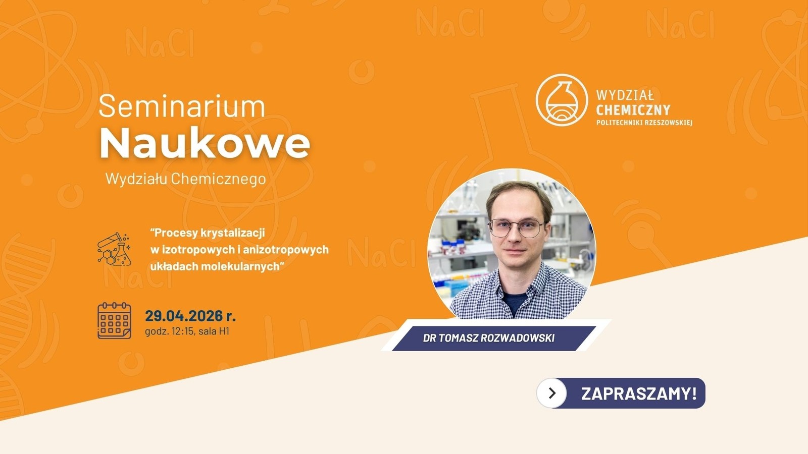 Zapraszamy na kolejne w tym roku Seminarium Naukowe Wydziału Chemicznego Politechniki Rzeszowskiej.