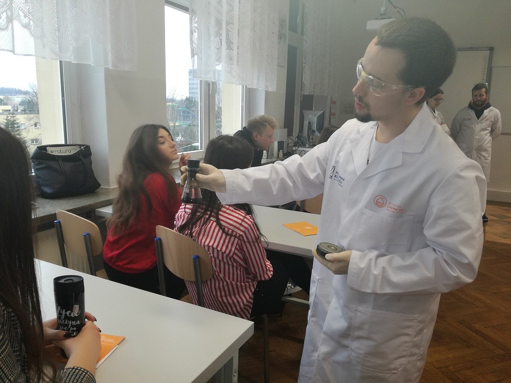Studenci, którzy wspierani przez opiekunów prof. dr hab. inż. Wiktora Bukowskiego i dr Łukasza Urama przygotowali te pasjonujące lekcje, teraz z ogromną pasją i bezinteresownie objaśniają zjawiska i reakcje chemiczne zachodzące w otoczeniu.
