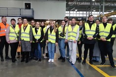 W kolejnym etapie wizyty studenci zwiedzili zakład produkcyjny wyrobów wodorozcieńczalnych i szpachli w Pustkowie, gdzie znajdują się nowoczesne, zautomatyzowane linie produkcyjne wyposażone w silosy, automatyczne dozowanie, mieszalniki, disolwery, automaty do rozlewania i roboty do pakowania produktów (w worki i pojemniki).