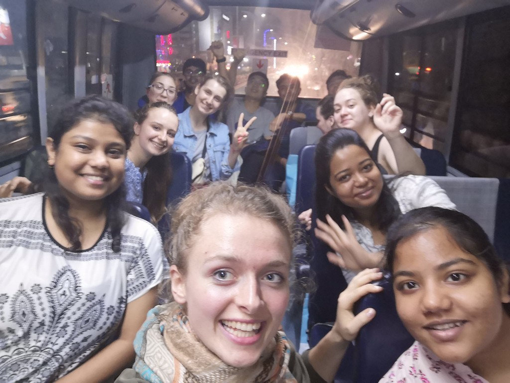 „Była to dla nas niesamowita przygoda, którą na pewno zapamiętamy do końca życia. Już na samym lotnisku zostałyśmy bardzo ciepło przyjęte przez studentów, którzy czekali na nas z kwiatami, biszkoptami, bananami i wodą – niby drobny gest, ale bardzo ucieszył nas po 24- godzinnej podróży. Na miejscu zostałyśmy zakwaterowane w hostelu na terenie uczelni, dzięki czemu mogłyśmy przez ten tydzień poczuć się jak studenci Adamas University. Indie słyną jako kraj, w którym używa się bardzo dużo przypraw- zwłaszcza tych pikantnych (nawet herbatę piją z masalą). Ze względu na nasz przyjazd kucharze akademiccy przygotowali specjalnie dla nas inne posiłki, abyśmy mogły spokojnie je zjeść i nie płakać podczas jedzenia.