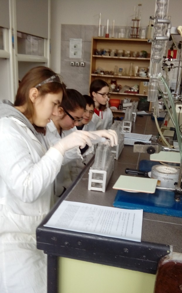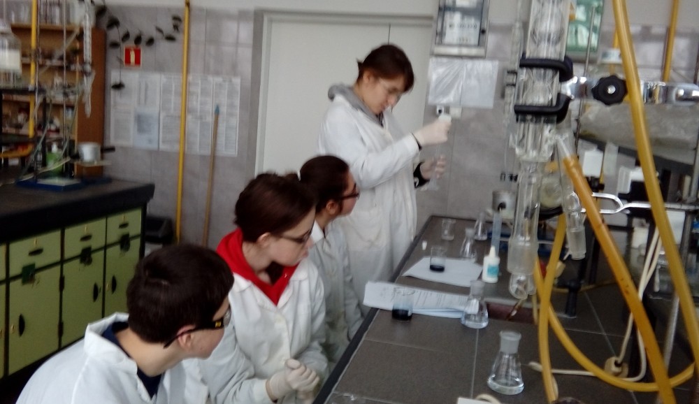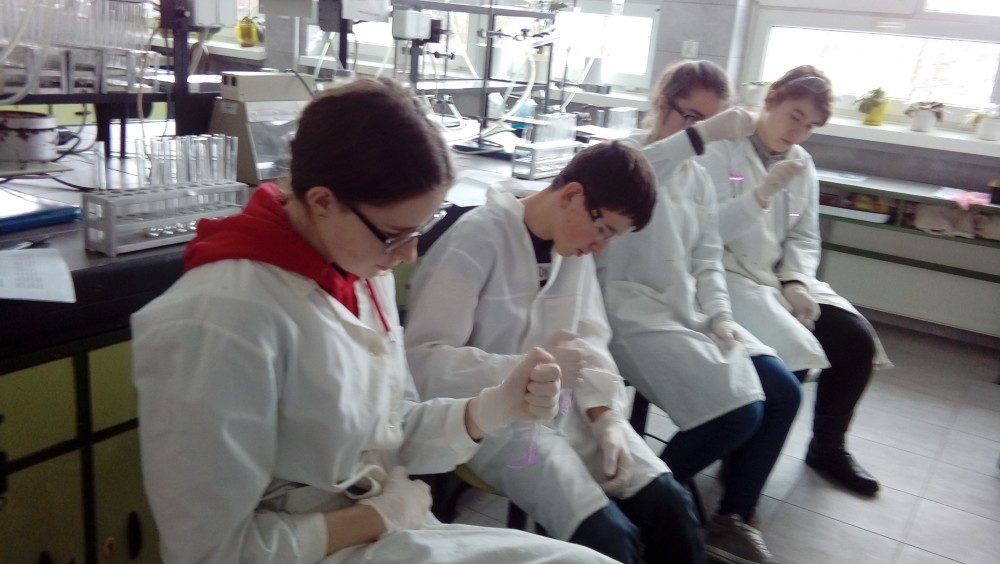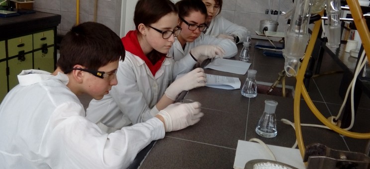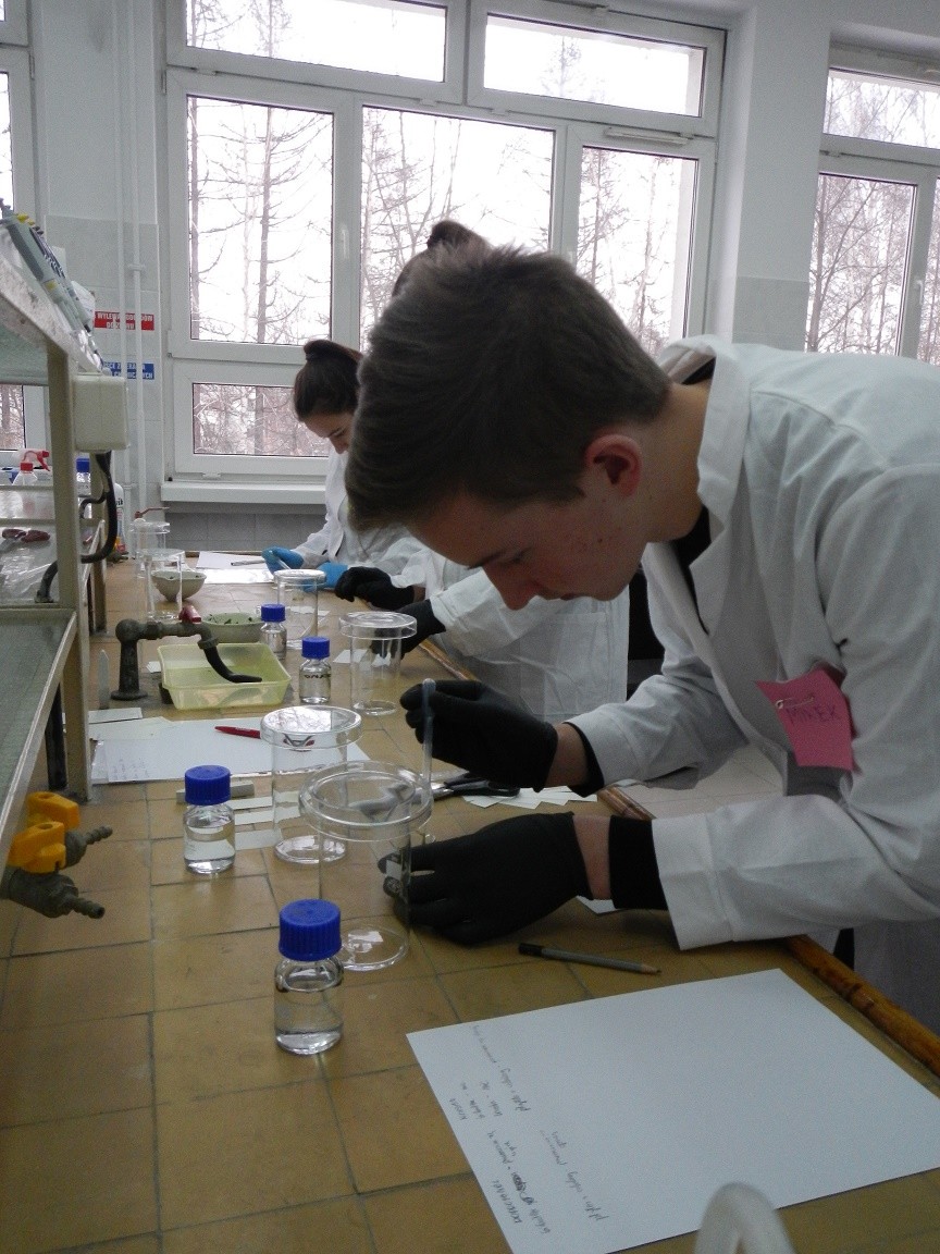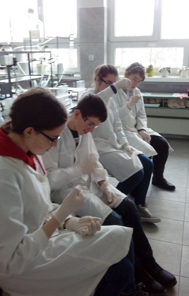 Niewielkie 5-osobowe grupy zajęciowe sprzyjają komfortowej pracy laboratoryjnej w naukowej atmosferze… Każdy z 65 uczniów, pracujących w 13 grupach, mógł samodzielnie przeprowadzić interesujące eksperymenty pod czułym okiem trenerów – na co dzień nauczycieli akademickich Wydziału Chemicznego …