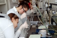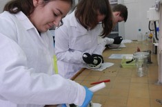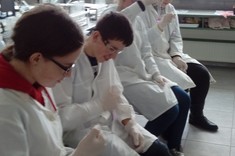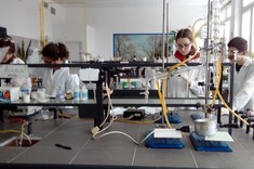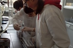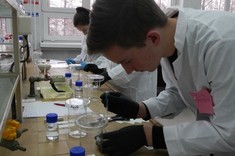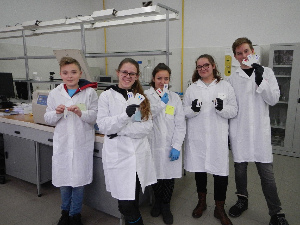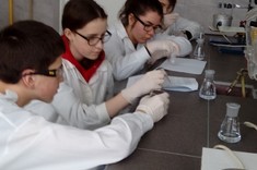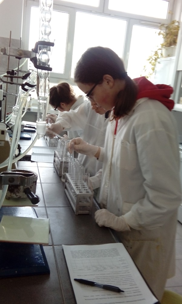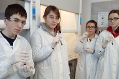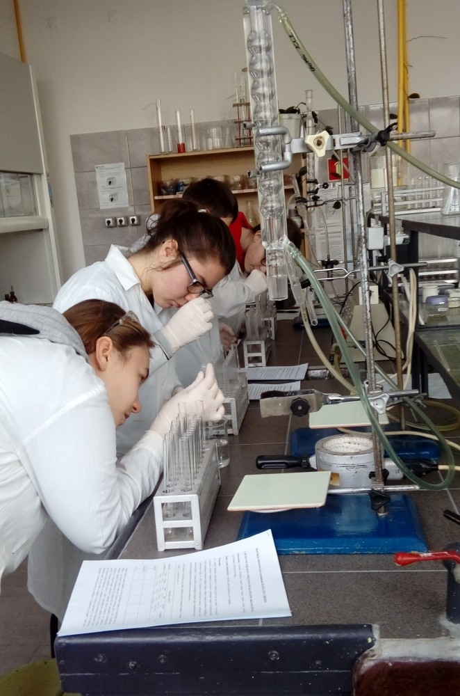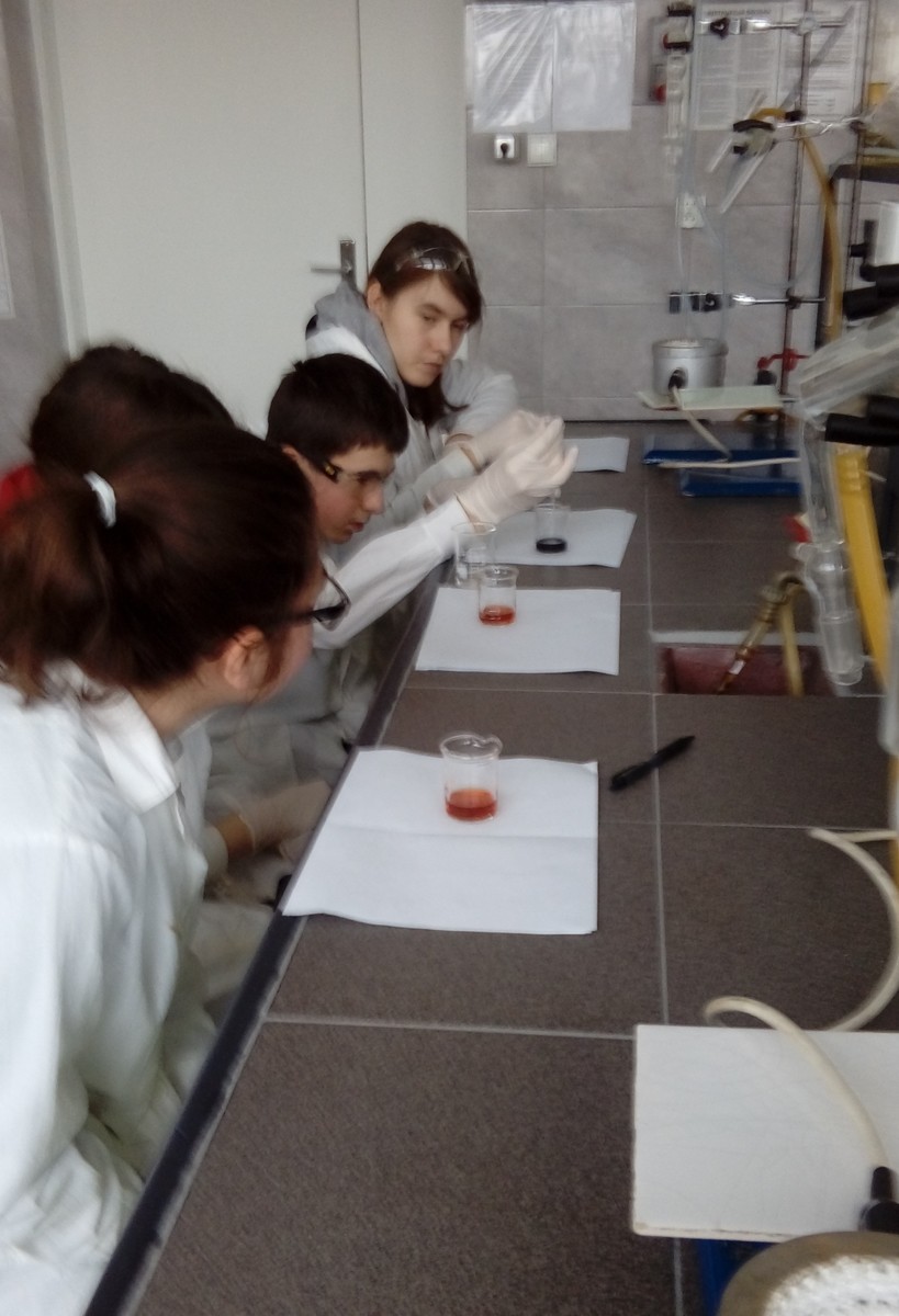Niewielkie 5-osobowe grupy zajęciowe sprzyjają komfortowej pracy laboratoryjnej w naukowej atmosferze… Każdy z 65 uczniów, pracujących w 13 grupach, mógł samodzielnie przeprowadzić interesujące eksperymenty pod czułym okiem trenerów – na co dzień nauczycieli akademickich Wydziału Chemicznego …