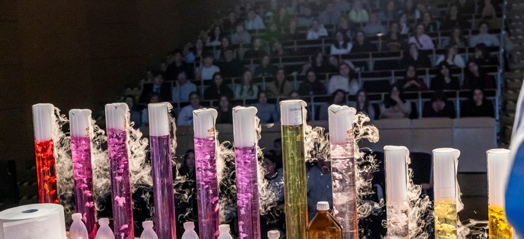 Uzdolnieni uczniowie z naszego województwa zmierzyli się z zadaniami z fizyki (środa) oraz chemii (czwartek). Zmaganiom konkursowym towarzyszyły pokazy z chemii i fizyki przygotowane przez studentów i pracowników Wydziału Chemicznego oraz Wydziału Matematyki i Fizyki Stosowanej. Przeprowadzone i omówione doświadczenia pokazały piękno tych dwóch dziedzin wiedzy oraz wskazały na praktyczny aspekt zjawisk towarzyszących nam niejednokrotnie w życiu codziennym. Mamy nadzieję, że Opiekunowie (prof. dr hab. inż. Wiktor Bukowski i dr hab. inż. Tomasz Więcek, prof. PRz) oraz studenci Koła Naukowego Studentów Chemii “Esprit” i Koła Naukowego „Foton” utwierdzili młodych adeptów wiedzy w słuszności wyboru nauk ścisłych.