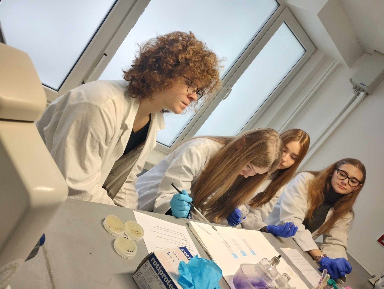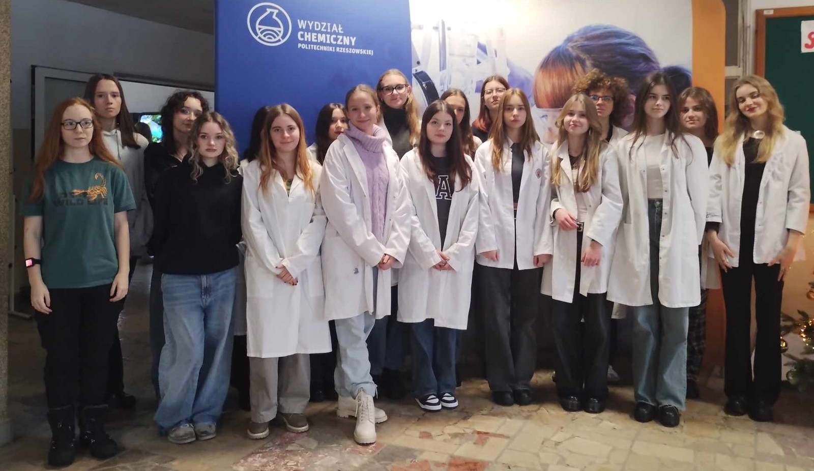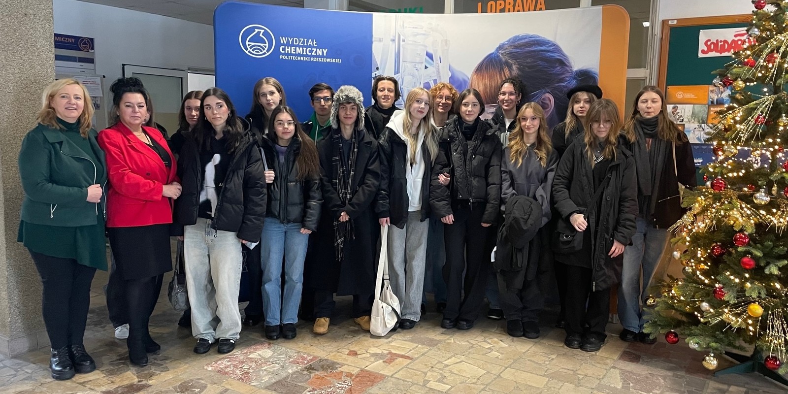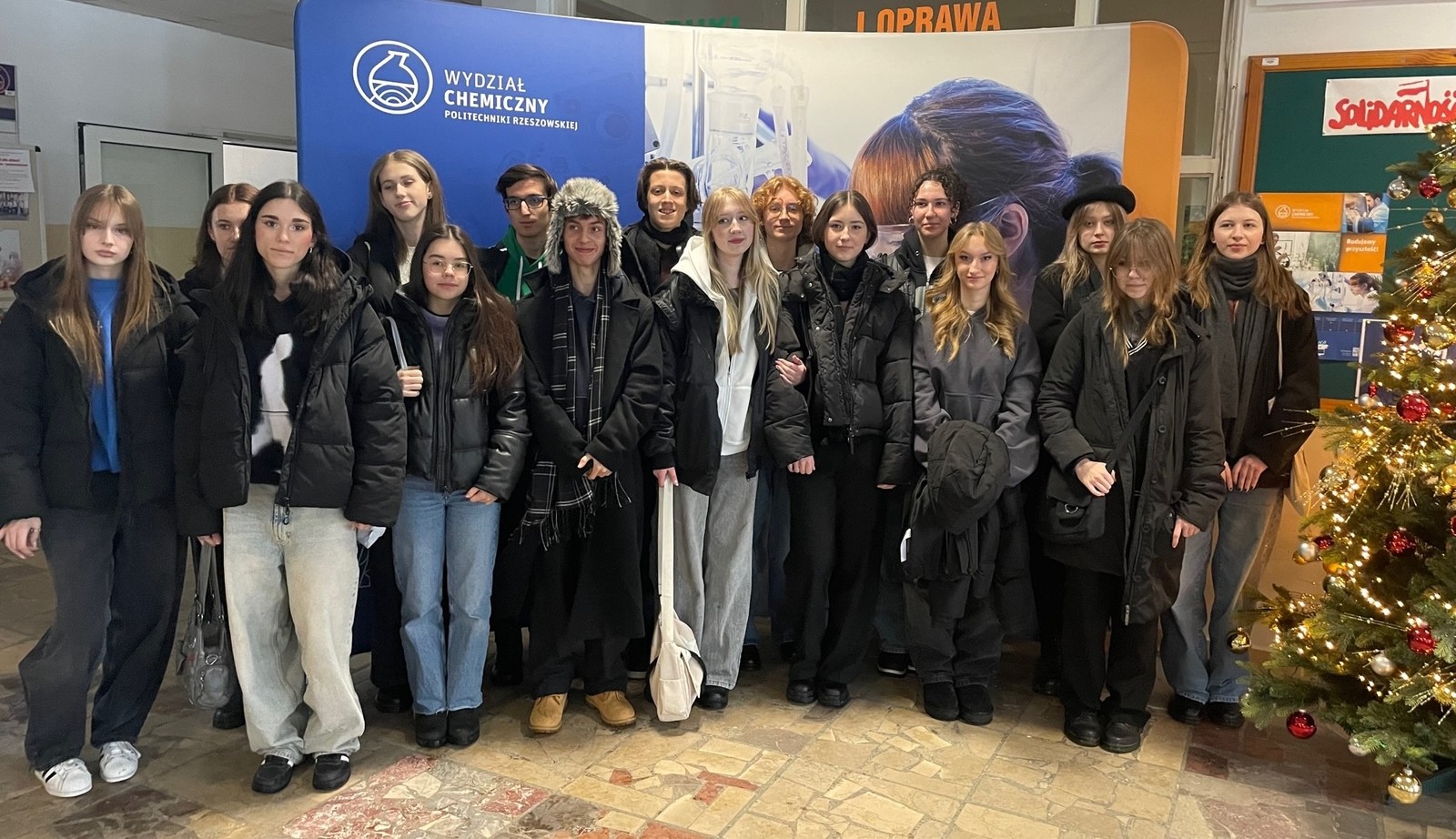 W dniu 8 grudnia 2023 r. uczniowie 1 Liceum Ogólnokształcącego w Rzeszowie wzięli udział w warsztatach na Wydziale Chemicznym
