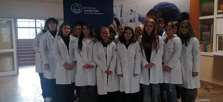 W dniu 10 listopada 2023 r. uczniowie Zespołu Szkół Spożywczych, Chemicznych i Ogólnokształcących im. Marii Curie-Skłodowskiej w Jarosławiu wzięli udział w zajęciach laboratoryjnych na WCh.