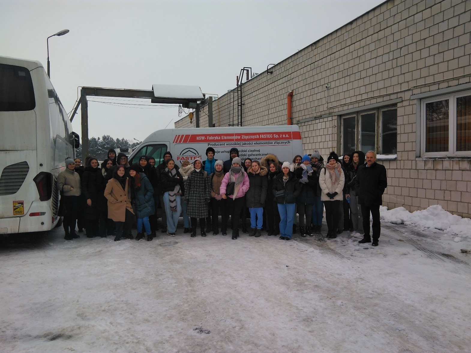 W grudniu 2023 r. studenci drugiego roku kierunku „Biotechnologia” wzięli udział w wizycie studyjnej w firmie HSW-Fabryka Elementów Złącznych FASTEC Sp. z o.o. w Zaklikowie.