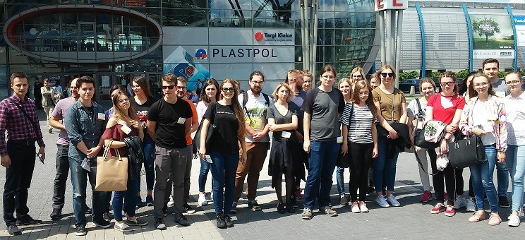 W dniu 22 maja 2018 r. kolejny raz firma DS Smith w Kielcach gościła studentów Wydziału Chemicznego na wizycie studyjnej, której celem było zapoznanie z technologią produkcji różnorodnych opakowań, z uwzględnieniem zasad zrównoważonego rozwoju. Wizyta studyjna w DS Smith to możliwość osobistego kontaktu z praktykami, co jest okazją do zweryfikowania i utrwalenia posiadanej wiedzy, zapoznania się z rzeczywistymi procesami produkcji oraz poznania mocnych i słabych rozwiązań technicznych prezentowanych na kartach podręczników akademickich. Ta wizyta była szczególnie cenna ze względu na możliwość zobaczenia nowatorskich rozwiązań w dziedzinie opakowalnictwa, bardzo dynamicznie rozwijającej się gałęzi gospodarki. DS Smith to producent m.in wielkogabarytowych skrzynek transportowych, zdobionych sitodrukiem lub techniką wtapiania etykiet w procesie formowania wtryskowego. Korzystając z okazji studenci wzięli również udział w XXII Międzynarodowych Targach Przetwórstwa Tworzyw Sztucznych i Gumy PLASTPOL. Targi w Kielcach to ekspozycja ponad 800 firm z 36 krajów świata. W jednym miejscu można było zobaczyć najnowsze maszyny, roboty, linie produkcyjne, komponenty, metody recyklingu tworzyw sztucznych. To najważniejsze i największe dla branży przetwórstwa tworzyw sztucznych targi w Polsce, wydarzenie niezwykle cenione w Europie. Studenci mogli zobaczyć najnowsze rozwiązania technologiczne wdrażane przez firmy z Niemiec, Austrii, Włoch, Francji, Holandii, Belgii, Czech, Danii, Grecji, Hiszpanii, Irlandii, Wielkiej Brytanii, Litwy, Izraela, Portugalii, Szwecji, Turcji, Rosji, USA, Słowacji, Węgier , Japonii, Chin czy Malezji. Studenci zostali również zaproszeni na sympozjum poświęcone sposobom inteligentnej kompensacji wahań procesu wtryskiwania przygotowane specjalnie dla nich przez reprezentantów firmy ENGEL Polska.