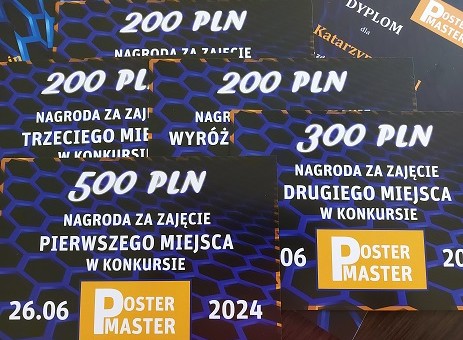 W dniu 26 czerwca br. odbyła się IV Dyplomowa Sesja Plakatowa POSTER MASTER 2024. Z satysfakcją informujemy o wyłonieniu zwycięzców. Komisja Konkursowa przyznała nagrody za wartość naukową, praktyczny aspekt zaproponowanych rozwiązań oraz ich oryginalność następującym studentom: