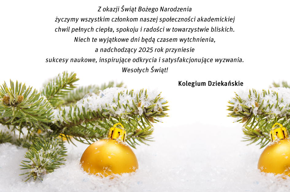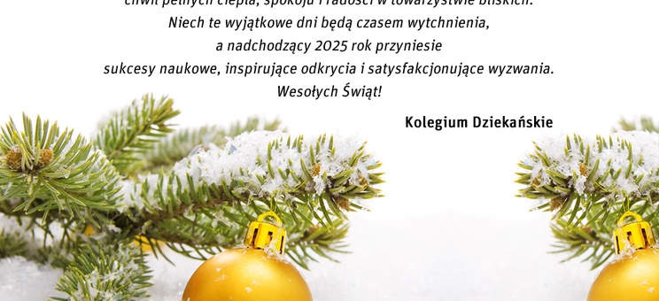 Kolegium Dziekańskie WCh składa Życzenia Świąteczne oraz Noworoczne dla wszystkich członków społeczności akademickiej.