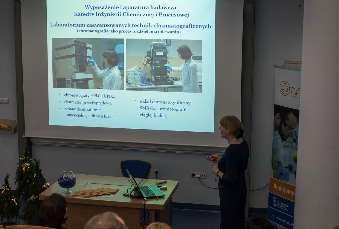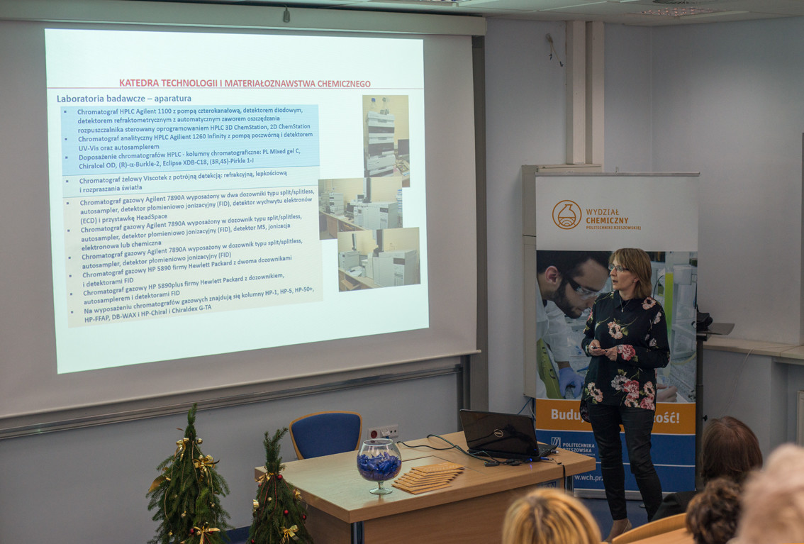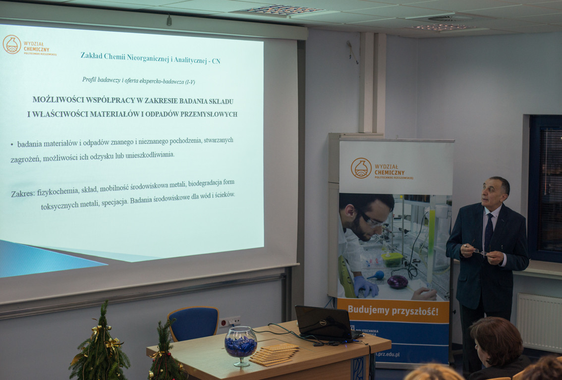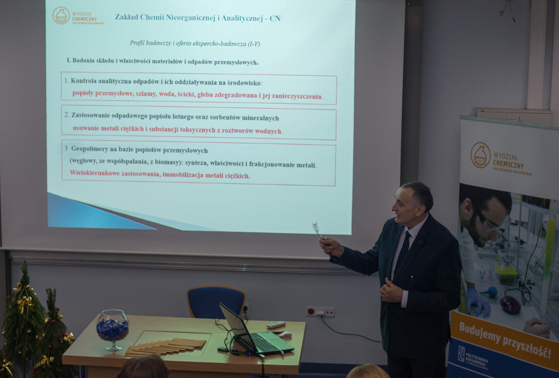 Spotkanie było świetną okazją do zaprezentowania oferty badawczej jednostek Wydziału. Tematykę badawczą oraz szczegóły możliwej współpracy zaprezentowali kierownicy wszystkich jednostek wydziałowych tj. Katedry Inżynierii Chemicznej i Procesowej, Katedry Technologii i Materiałoznawstwa Chemicznego, Zakładu Biotechnologii i Bioinformatyki, Zakładu Chemii Organicznej, Zakładu Chemii Fizycznej, Zakładu Chemii Nieorganicznej i Analitycznej, Zakładu Polimerów i Biopolimerów, Zakładu Kompozytów Polimerowych oraz Wydziałowego Laboratorium Spektrometrii