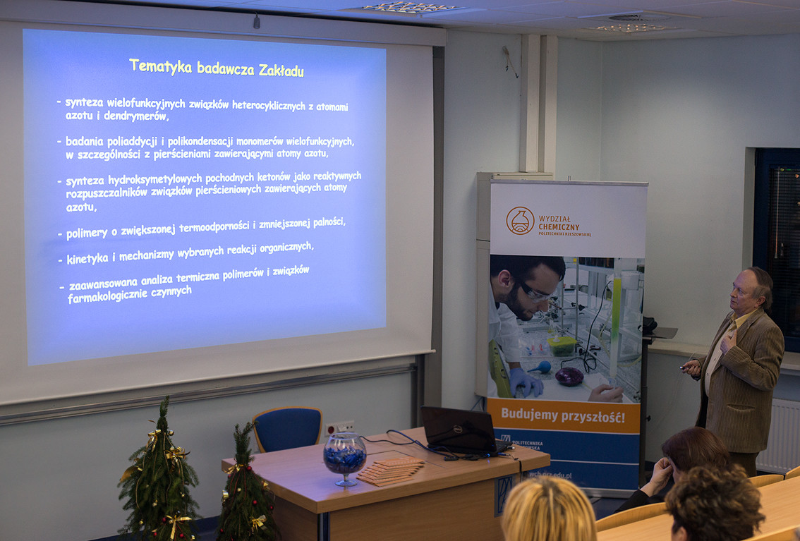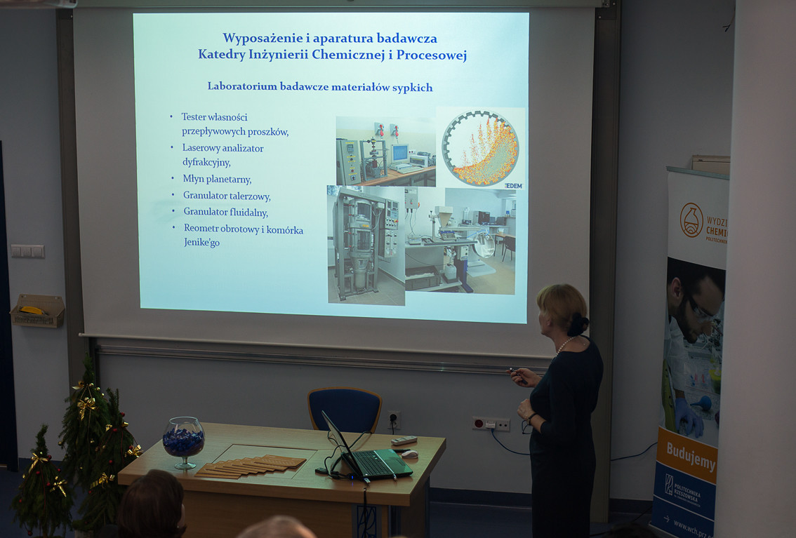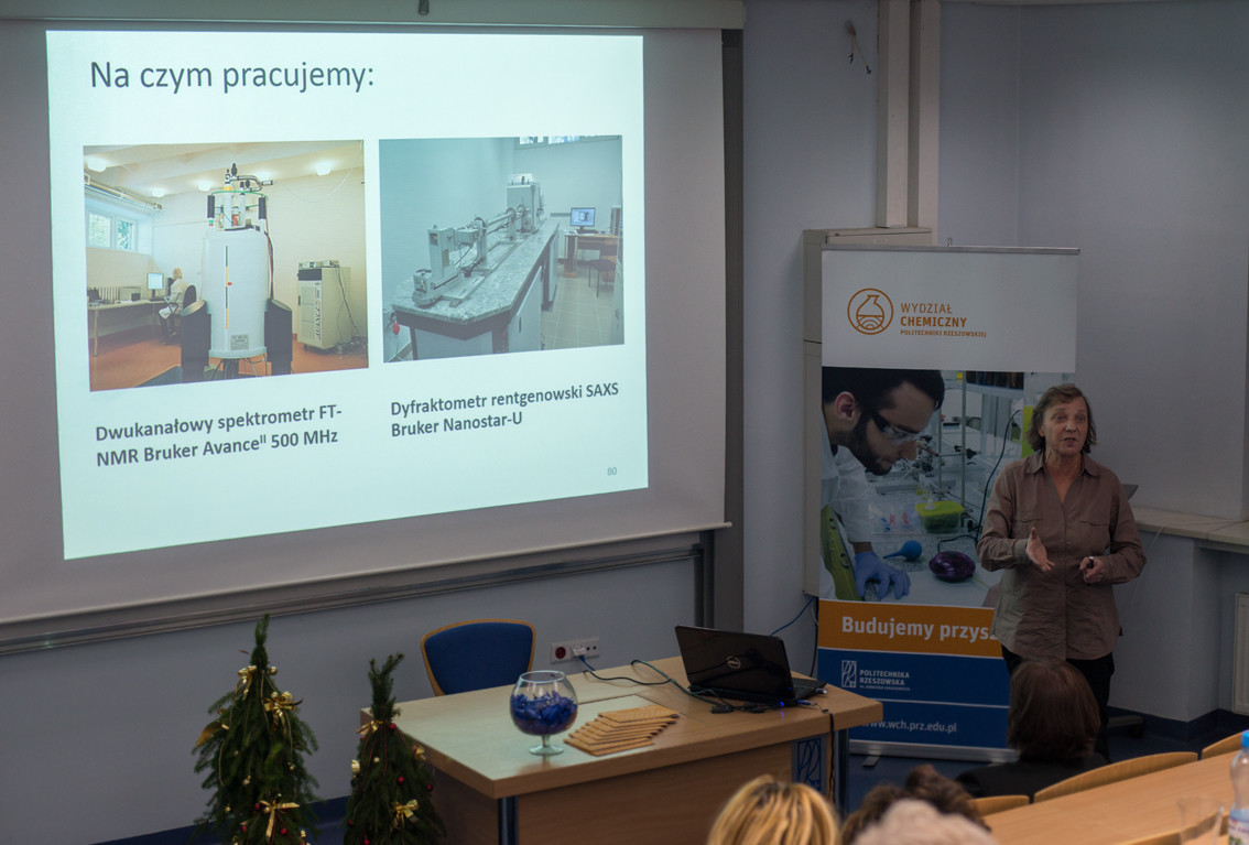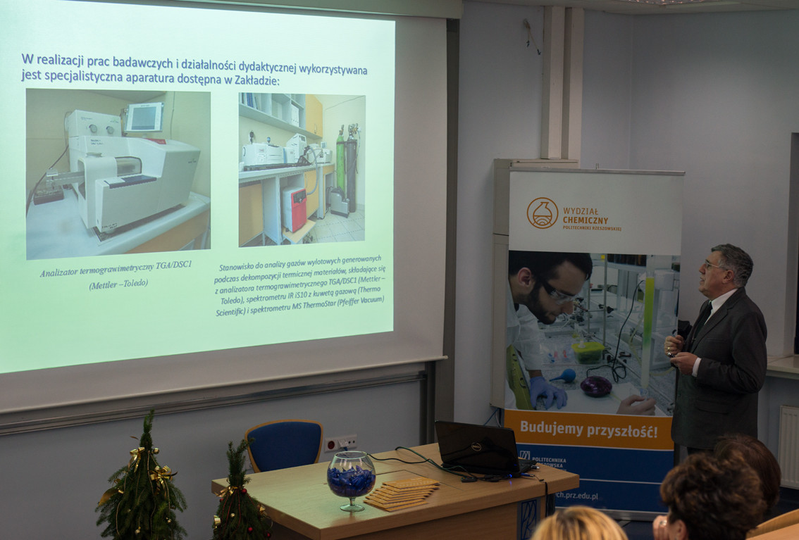Spotkanie było świetną okazją do zaprezentowania oferty badawczej jednostek Wydziału. Tematykę badawczą oraz szczegóły możliwej współpracy zaprezentowali kierownicy wszystkich jednostek wydziałowych tj. Katedry Inżynierii Chemicznej i Procesowej, Katedry Technologii i Materiałoznawstwa Chemicznego, Zakładu Biotechnologii i Bioinformatyki, Zakładu Chemii Organicznej, Zakładu Chemii Fizycznej, Zakładu Chemii Nieorganicznej i Analitycznej, Zakładu Polimerów i Biopolimerów, Zakładu Kompozytów Polimerowych oraz Wydziałowego Laboratorium Spektrometrii