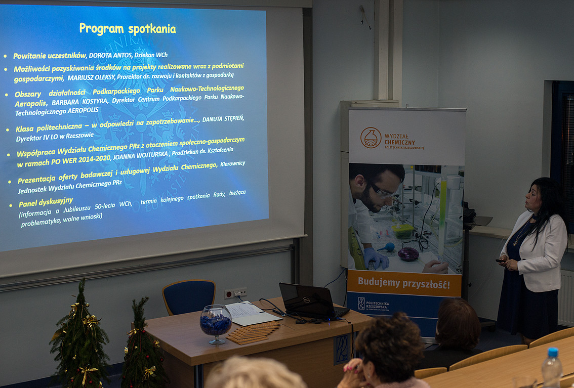 Już tradycyjnie w grudniu, odbyło się coroczne posiedzenie Rady Gospodarczej Wydziału Chemicznego. Członkami tego gremium są przedstawiciele przedsiębiorstw, organizacji i administracji publicznej z Podkarpacia. Cykliczne spotkanie stanowi forum dialogu, inspiracji i integracji reprezentantów Uczelni oraz przedstawicieli jej otoczenia społeczno-gospodarczego. Jest szansą na omówienie planowanych działań, okazją do weryfikacji celowości tych zamierzeń oraz sposobnością na skonfrontowanie oczekiwań przedsiębiorców z możliwościami i celami strategicznymi Uczelni.